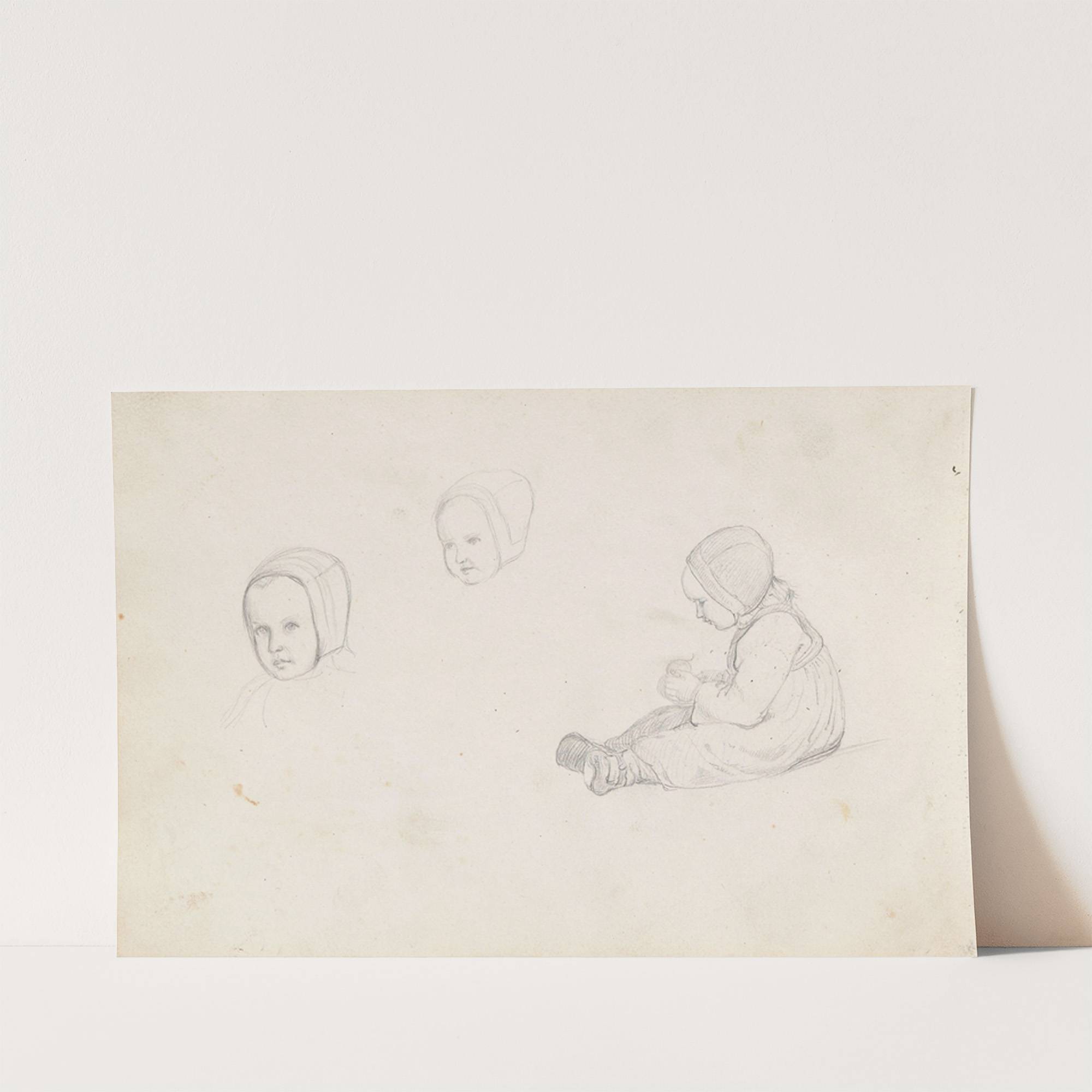 This minimalist sketch features a delicate line drawing in monochrome. On the left side of the composition are two loosely sketched child-like faces, with gentle expressions that hint at innocence and curiosity. Each face is minimally detailed, focusing on the...