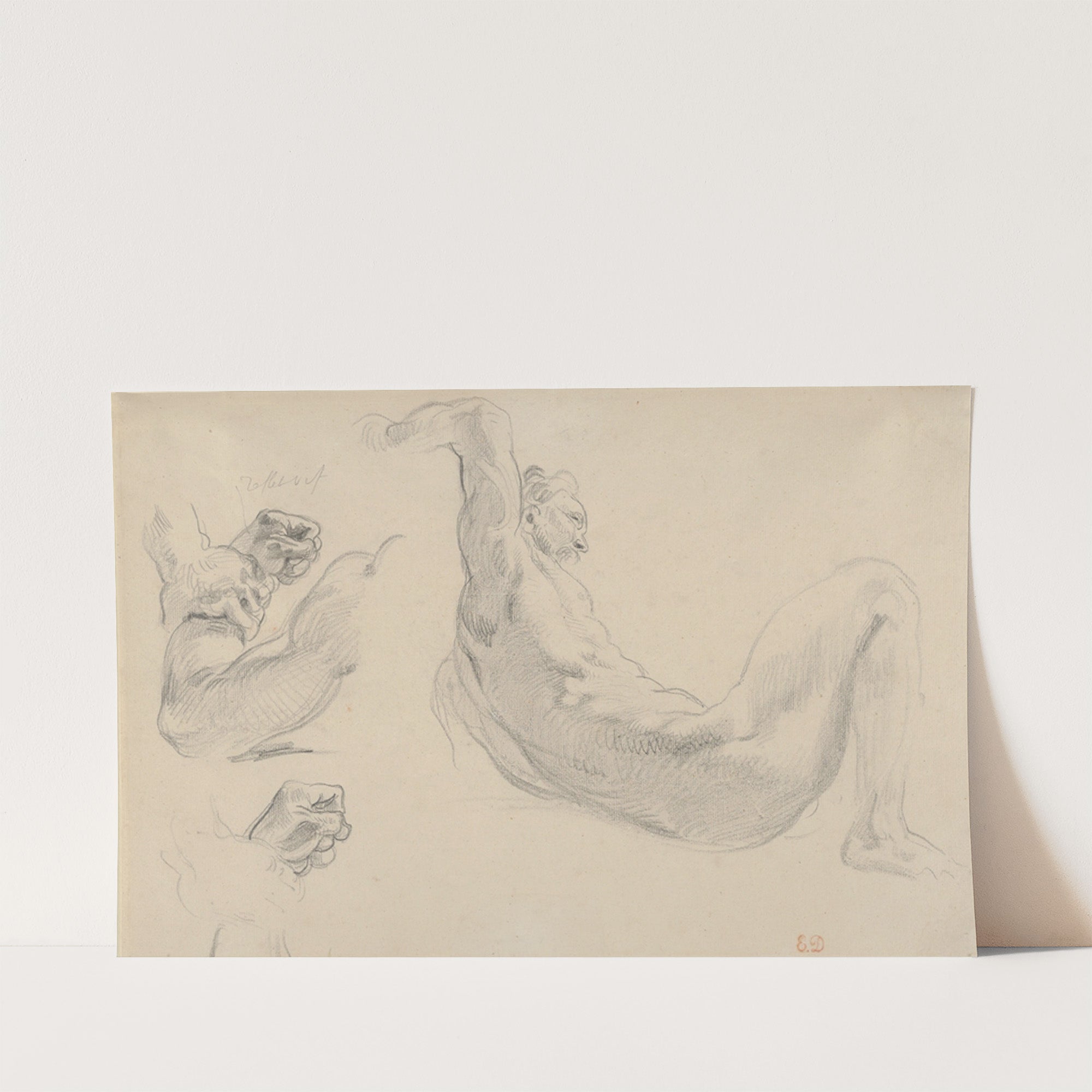 Studies of a Fallen Male Nude for ‘Hercules and the Horses of Diomedes’ (1852) by Eugène Delacroix - Wall Art Print