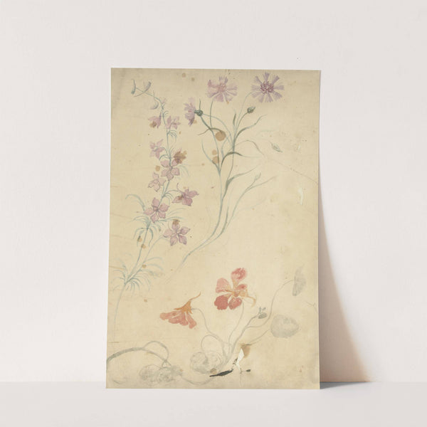 Studies van ridderspoor, anjer en Oostindische kers (1677 - 1755) by Elias van Nijmegen - Wall Art Print
