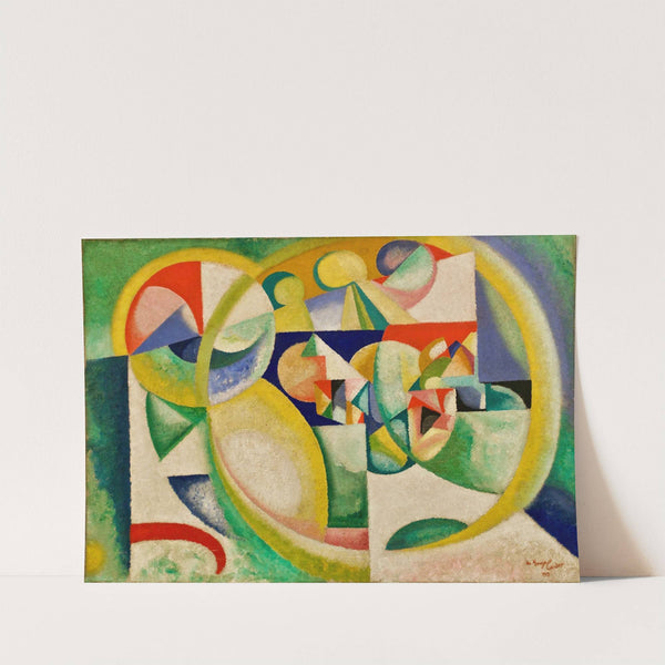 This vibrant art print features "Study B" by Amadeo de Souza-Cardoso, showcasing an abstract geometric style with bold use of color and form. Dominated by circular and triangular shapes, the composition combines warm yellows and cool greens, contrasting with vivid...