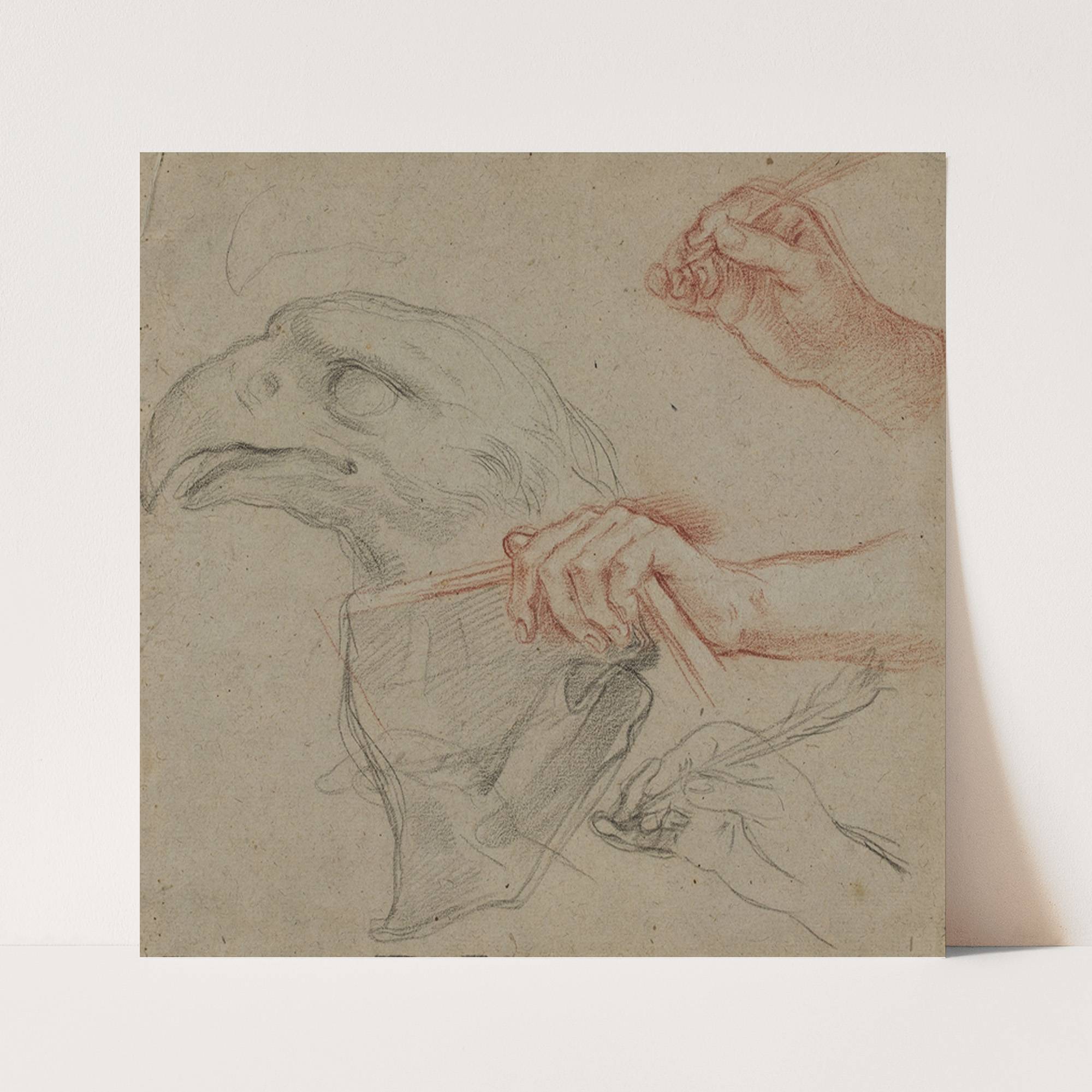 Study for an eagle’s head, three studies for a hand with a quill_and one study for a hand holding a book by Carlo Maratti - Wall Art Print