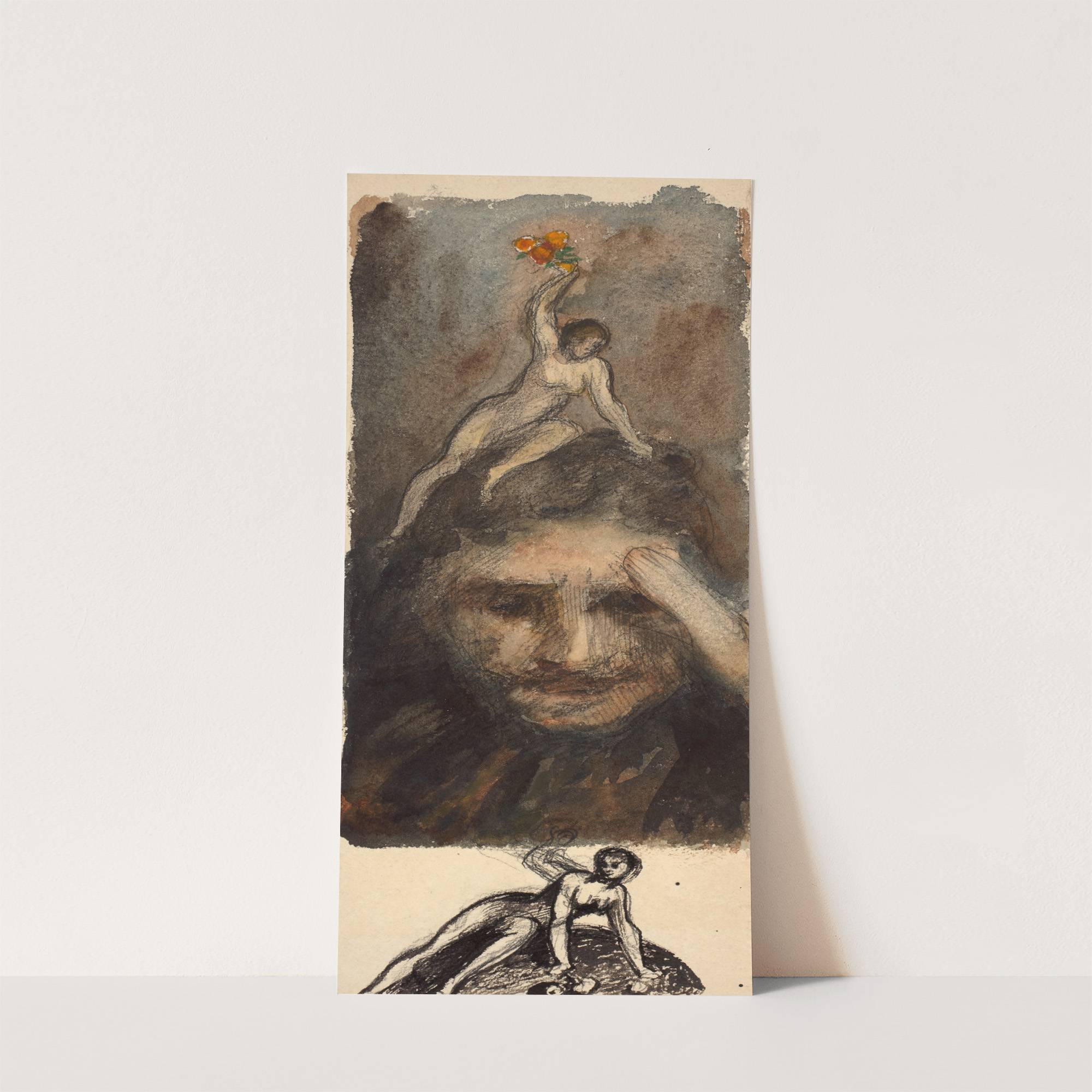 Study, nude of a woman holding a bouquet of flowers on a man’s head by Félix Bracquemond - Wall Art Print