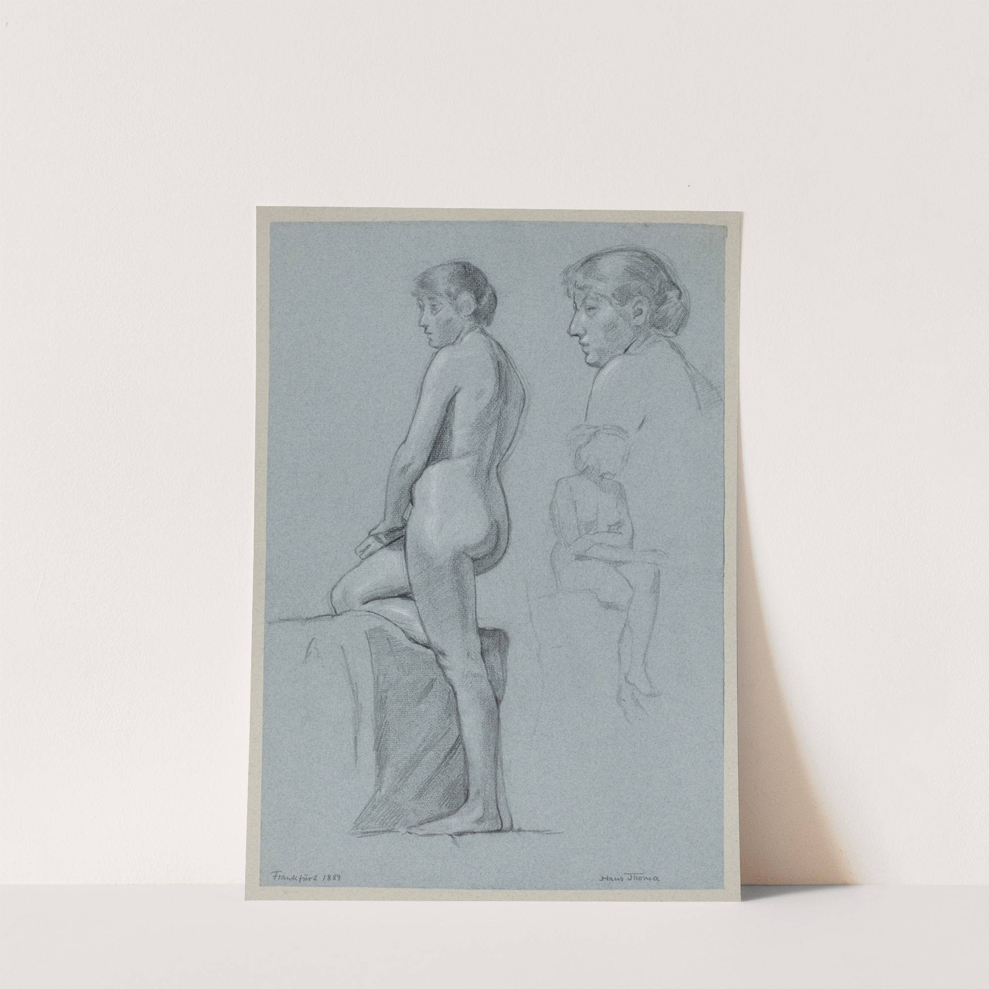 Study of a Female Nude, Sitting Female Nude, Study of a Head (1889) by Hans Thoma - Wall Art Print