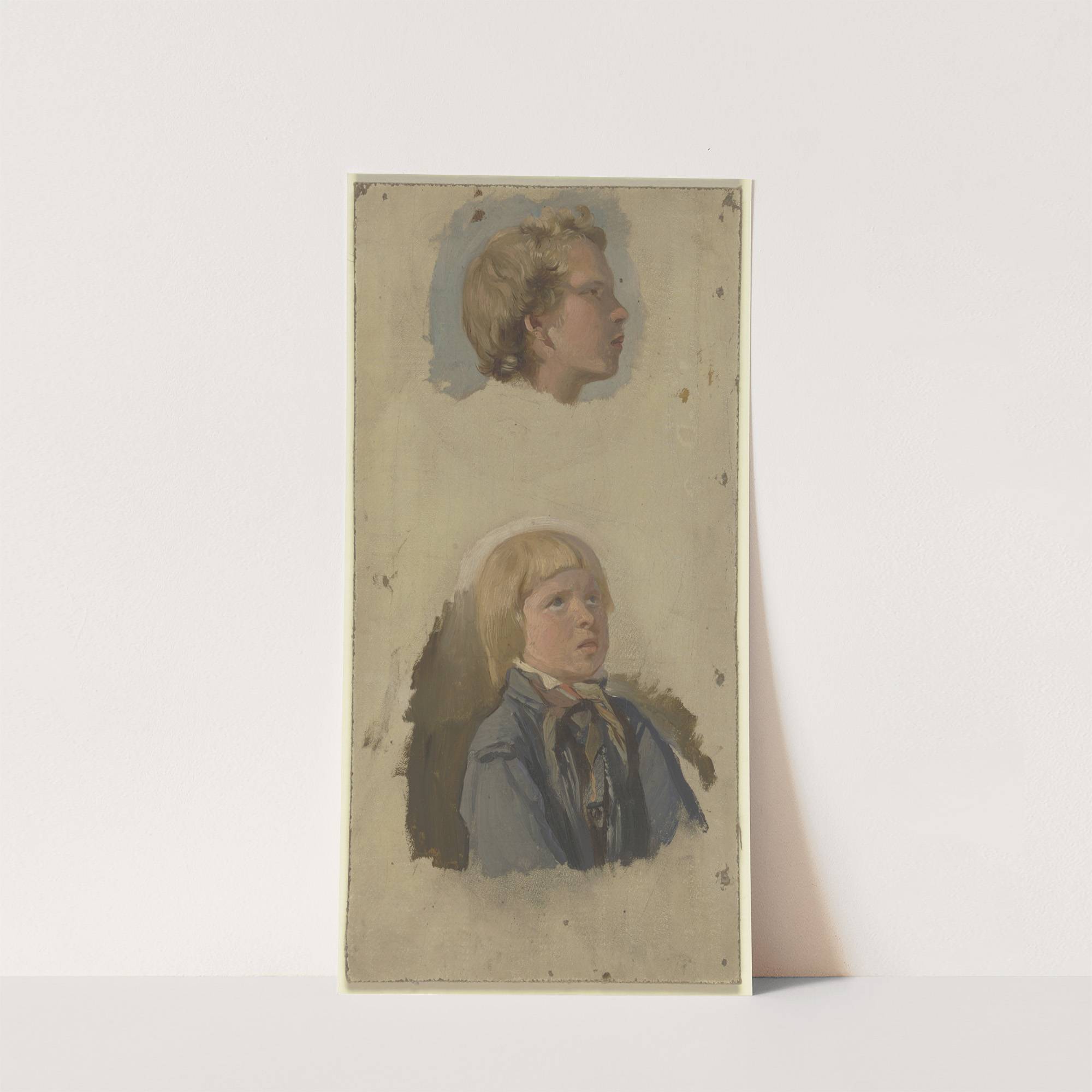 Study of a head of two boys by Jakob Becker - Wall Art Print