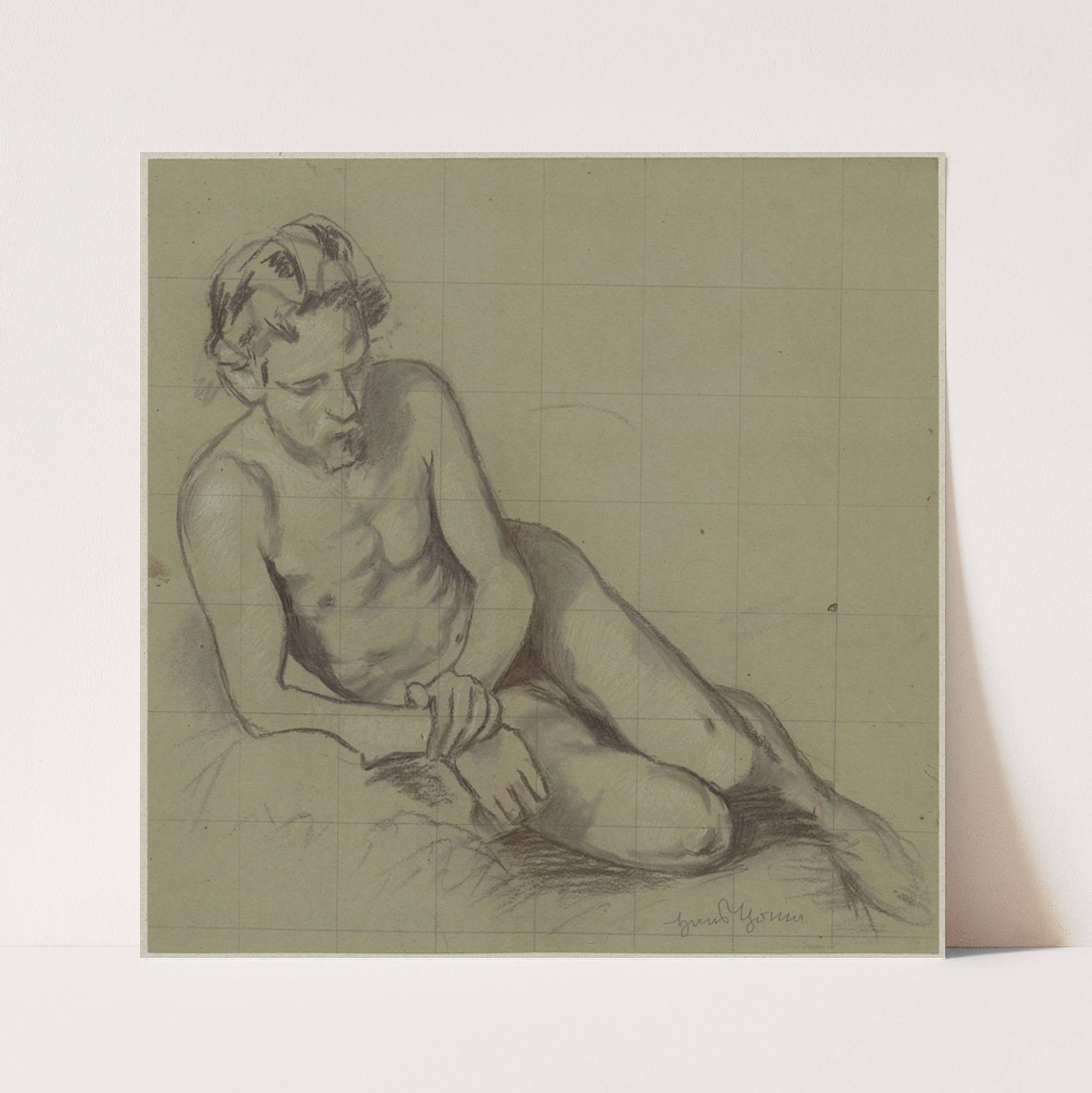 Study of a naked man lying on his right side (1880 - 1900) by Hans Thoma - Wall Art Print