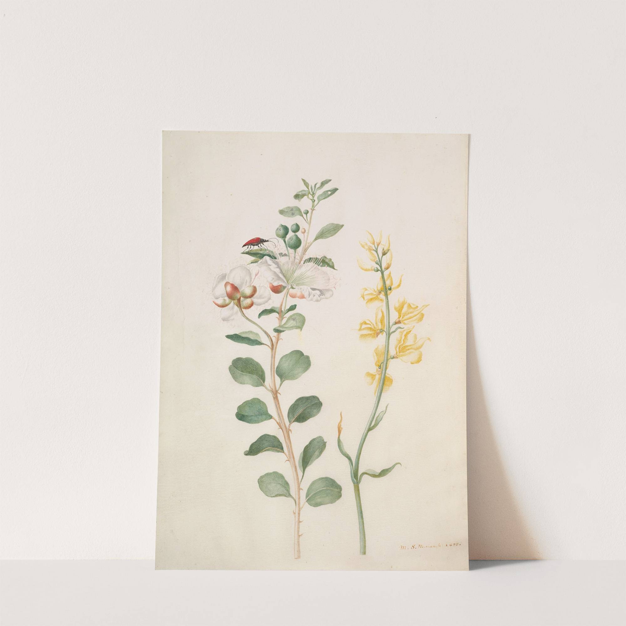 Study of Capers, Gorse, and a Beetle (1693) by Maria Sibylla Merian - Wall Art Print