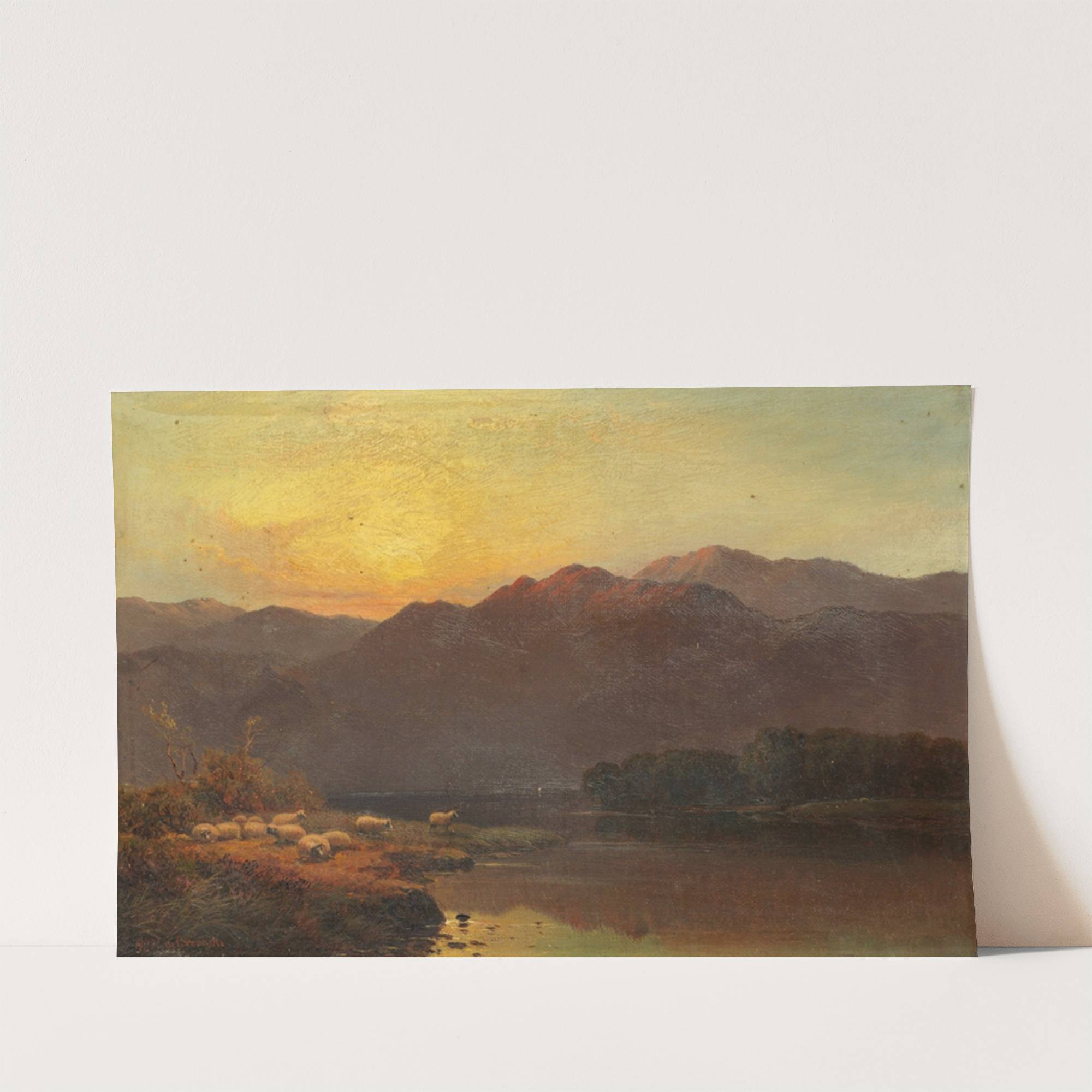 This art print features "Summer's Evening, Llyn Gwynant, North Wales" by Alfred de Bréanski, capturing the serene beauty of a tranquil landscape at sunset. The artwork showcases a reflective body of water in the foreground, mirroring the surrounding hills and...