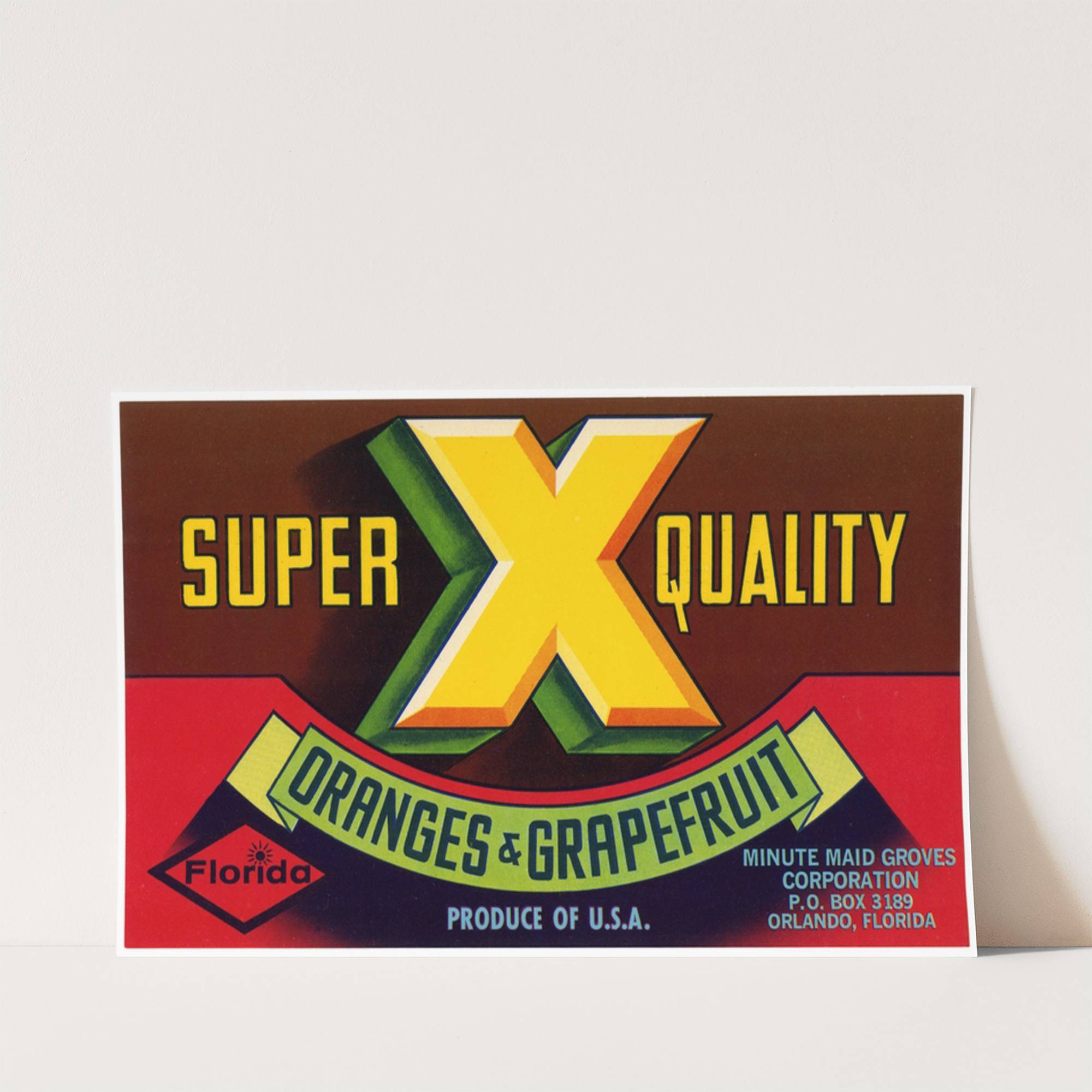 Super X Quality Oranges and Grapefruit Label (1930-1950) - Wall Art Print