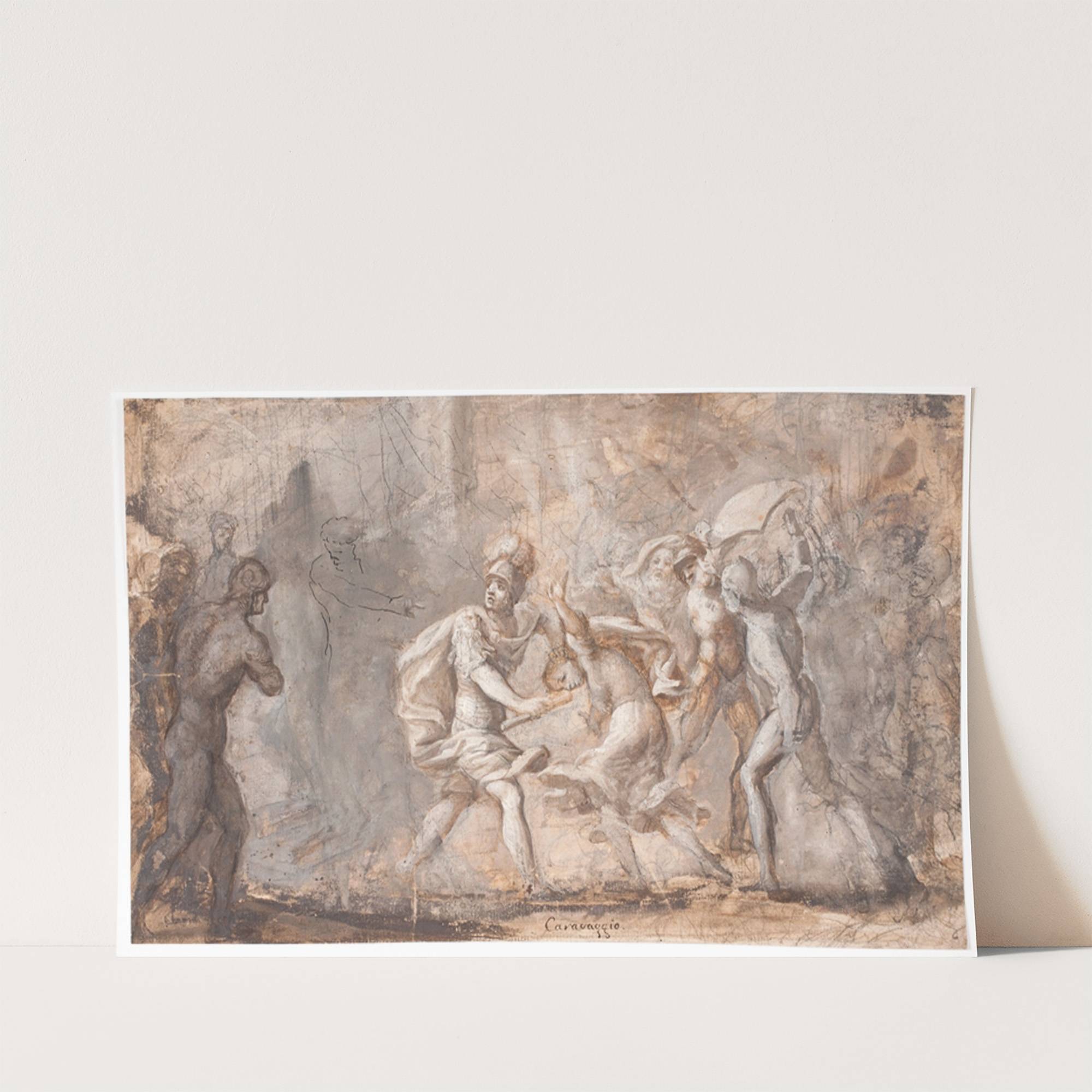 Tarpeia knuses under Sabinernes skjolde by Giovanni Angelo Canini - Wall Art Print
