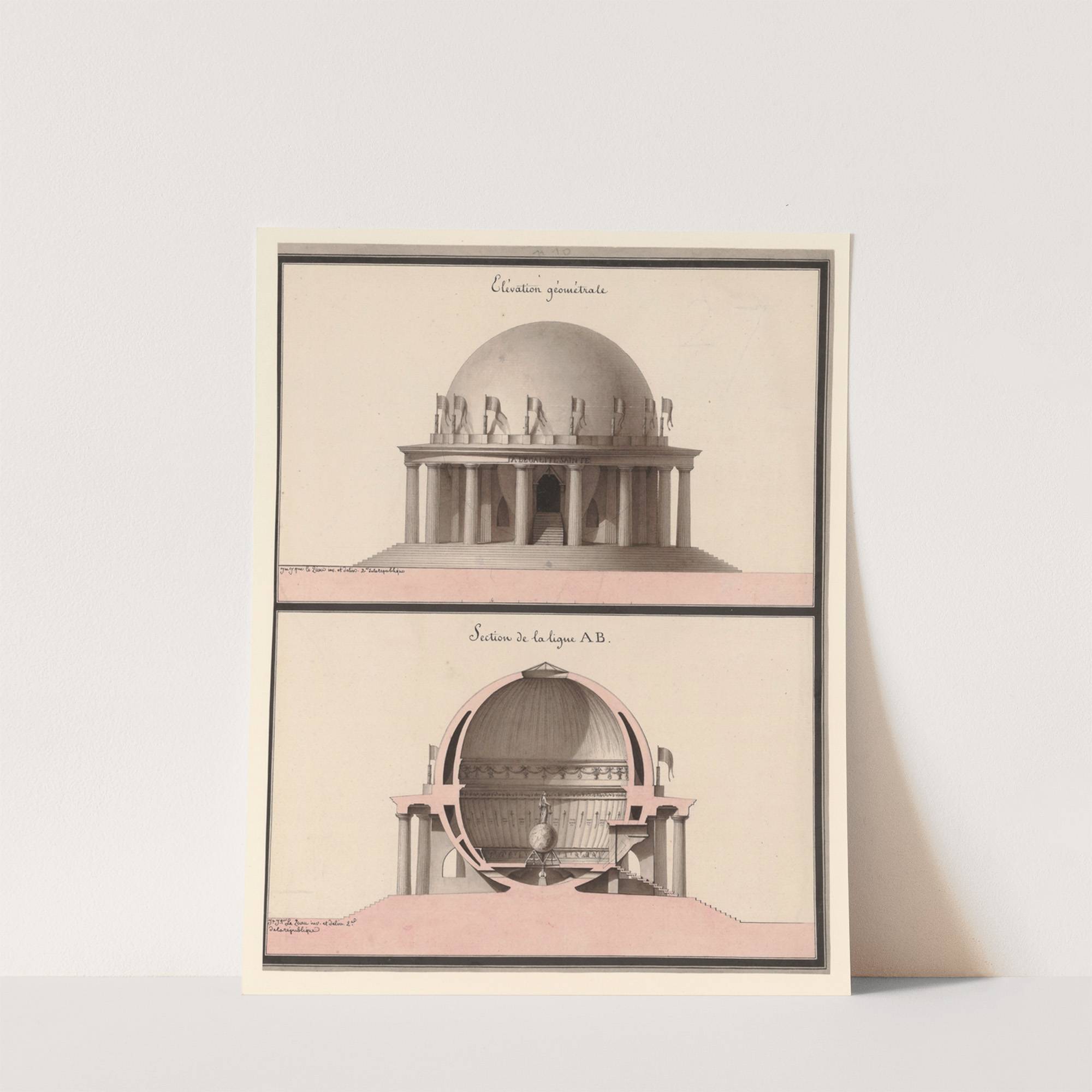 Temple consacré à l’Egalité. Elévation géométrale ; Section de la ligne AB (1793-1794) by Jean Jacques Lequeu - Wall Art Print