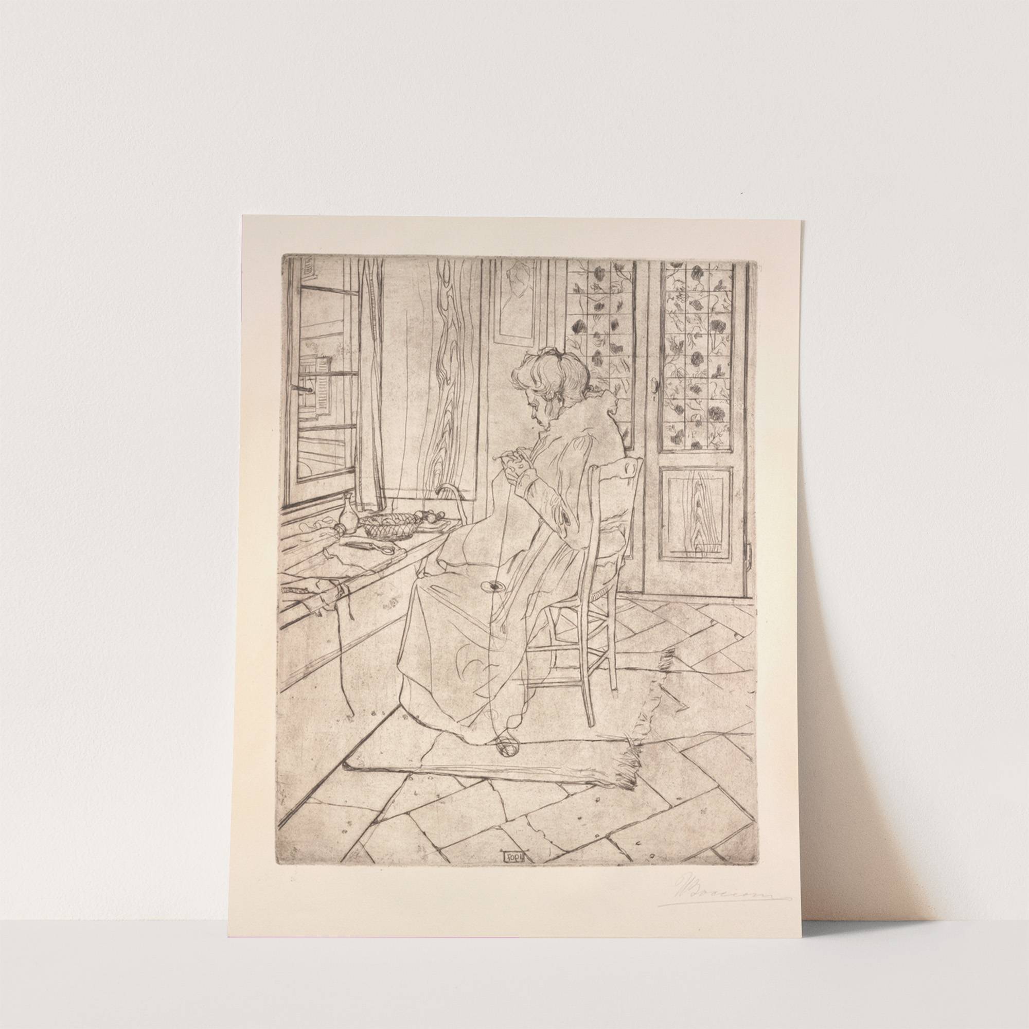 The Artist’s Mother Crocheting by Umberto Boccioni - Wall Art Print