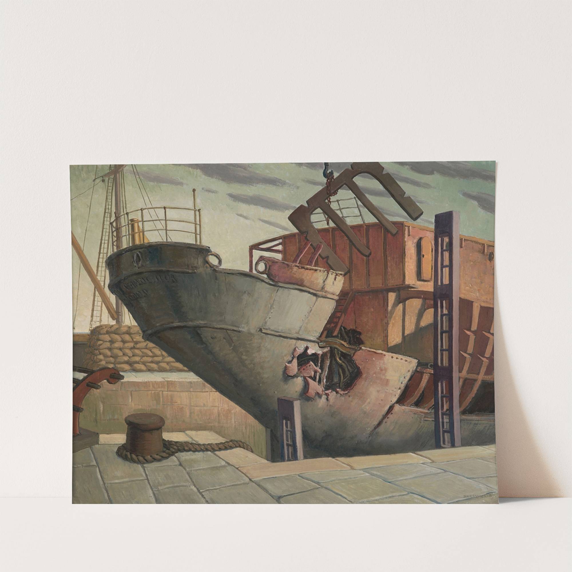 The ‘British Chancellor’ in dry dock, Falmouth, Oct. 1940 by Harry Morley - Wall Art Print