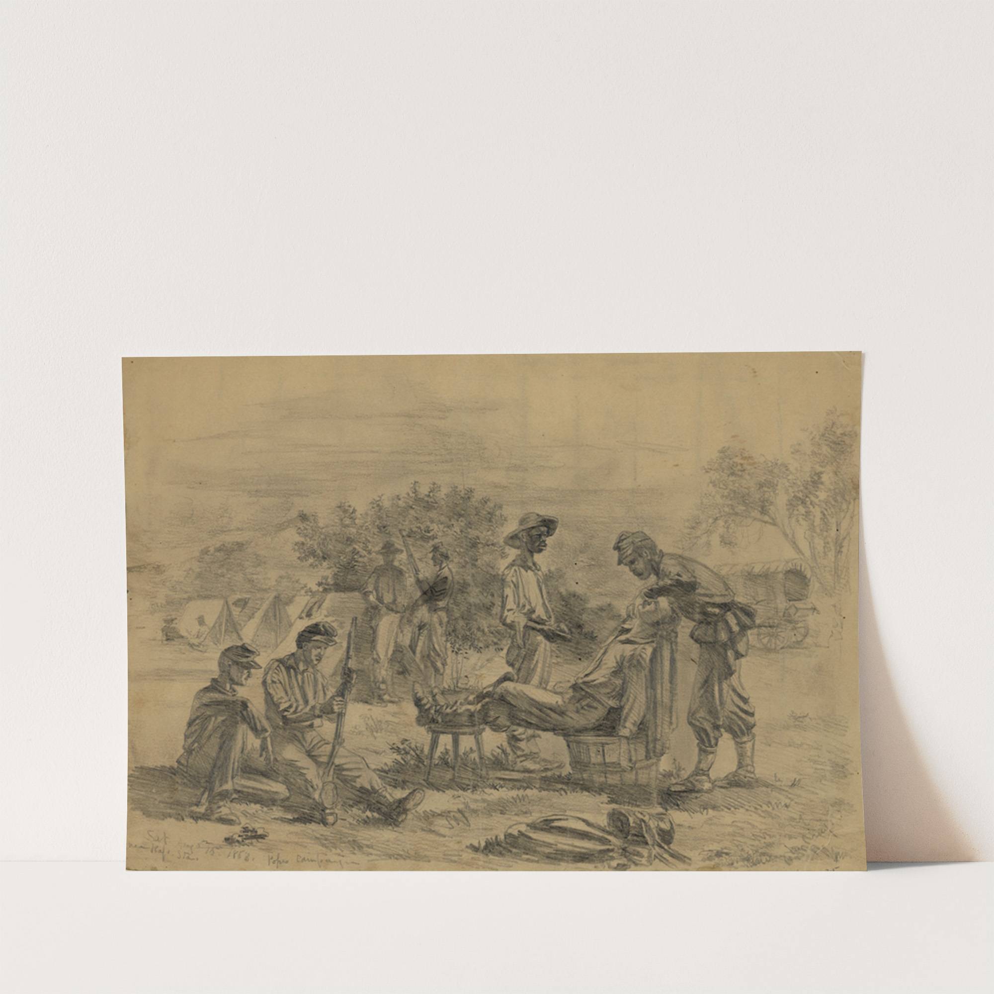 The camp barber–taking a shave–Saturday–Rappahannock Station, Va. by Edwin Forbes - Wall Art Print
