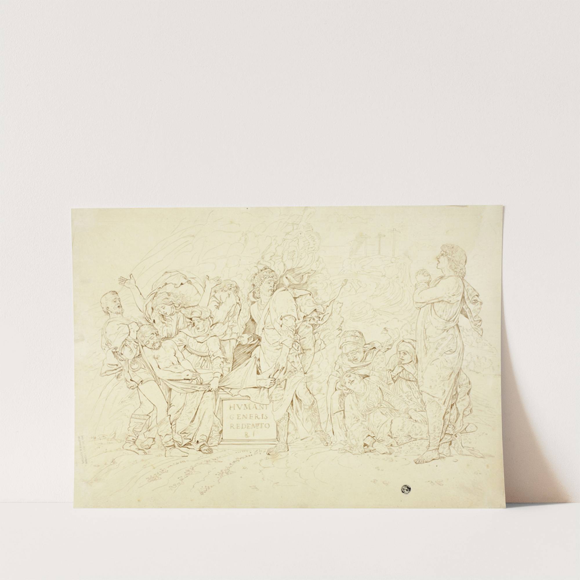 This is a meticulously detailed line drawing titled "The Entombment of Christ" by After Andrea Mantegna. This monochromatic sketch depicts the poignant scene of Jesus being laid in his tomb. With delicate, precise lines, the artist skillfully captures the emotional...