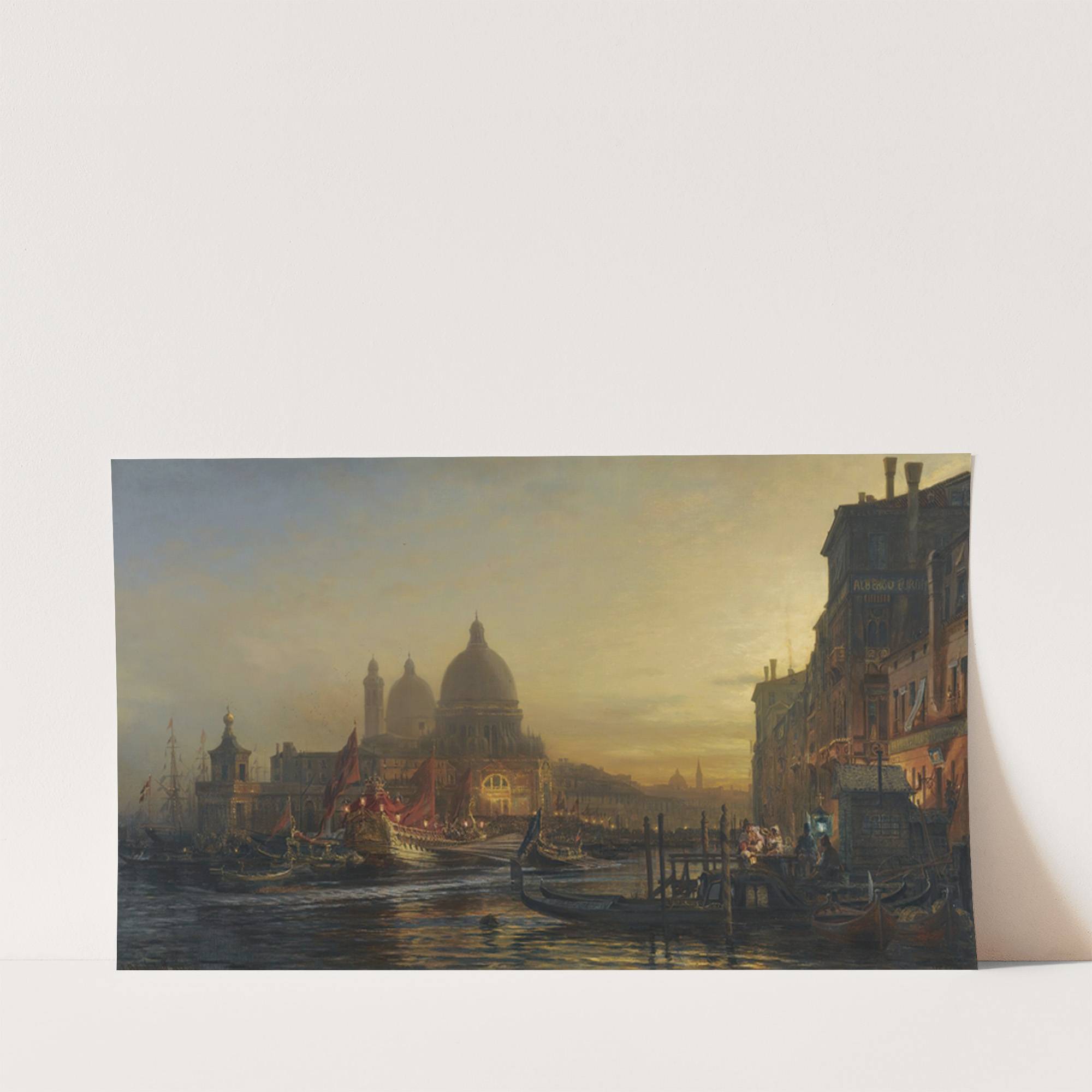 Transform your space with "The Eve of the Celebration, Santa Maria della Salute, Venice," a breathtaking art print capturing the enchantment of Venetian harbor life during sunset. This masterpiece by Alexey Petrovivch Bogolyubov brings to life a serene yet bustling...