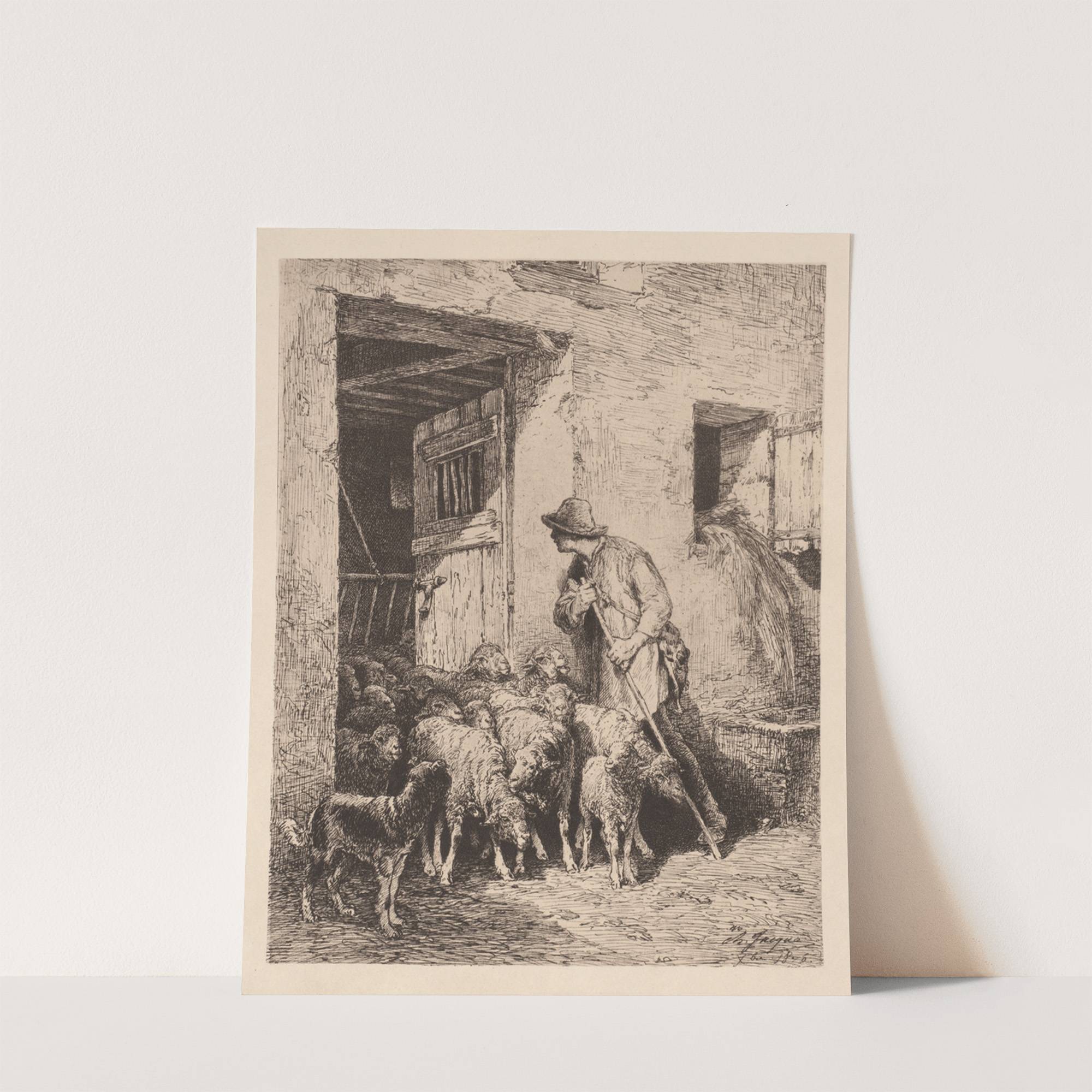The Herd Exits (1876) by Charles Emile Jacque - Wall Art Print