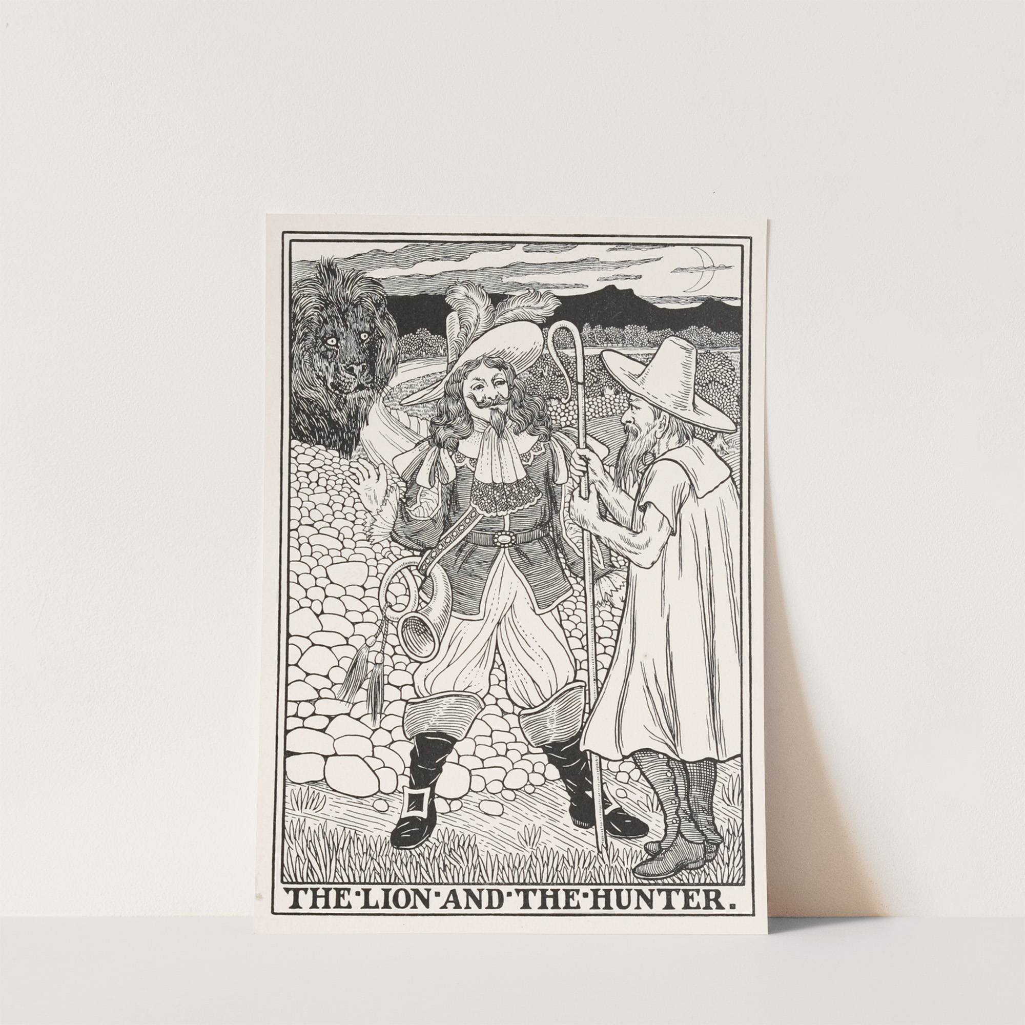 The Lion and the Hunter by Percy J. Billinghurst - Wall Art Print