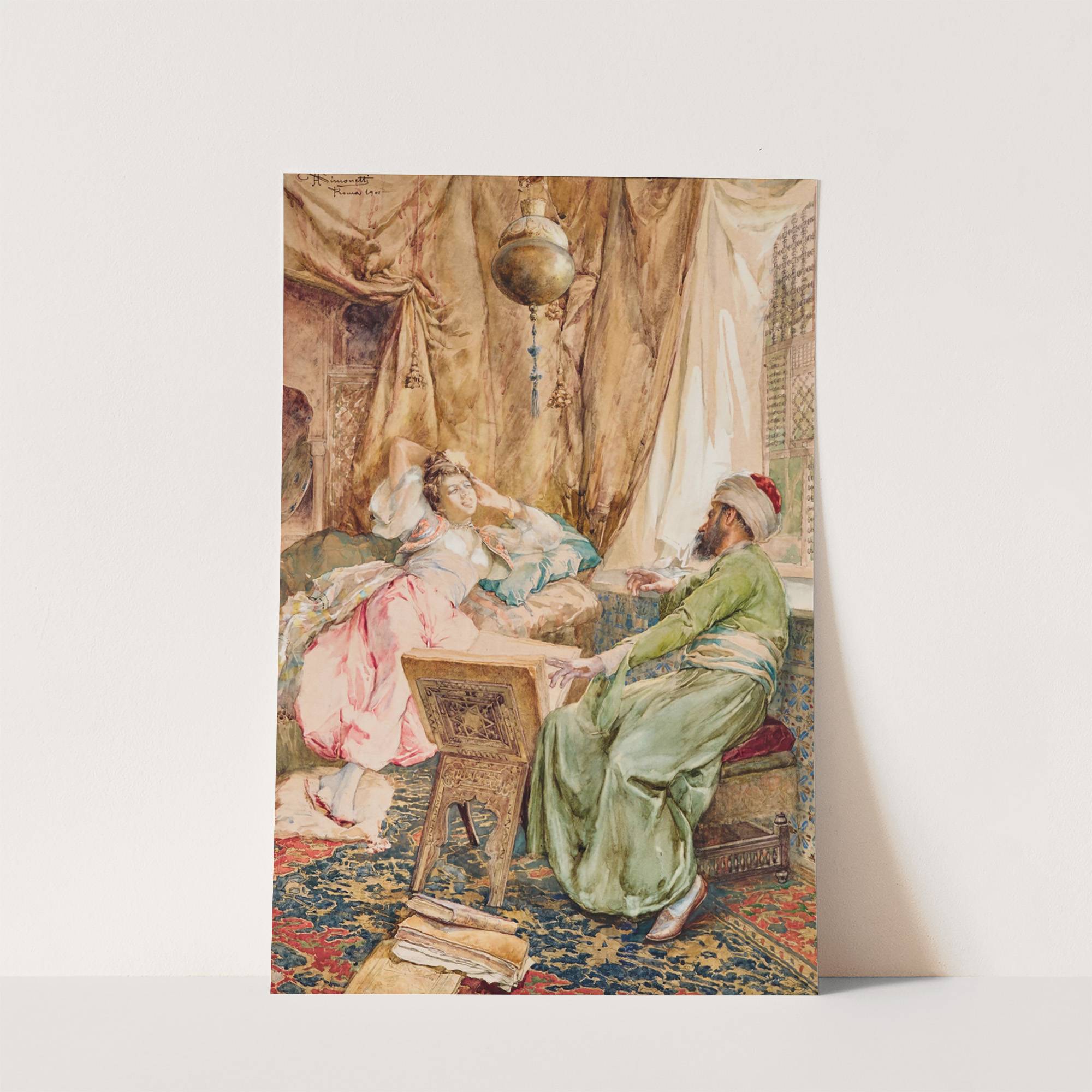This vibrant art print features "The Reader" by Amedeo Simonetti, showcasing a richly detailed scene of historical elegance. Two figures are depicted in a cozy, opulent setting. On the left, a young woman with fair skin and auburn hair wears...