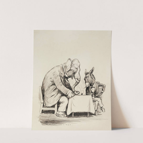 The Republican Party elephant and Democratic Party donkey in suits, sitting together drinking and smoking. (1920) by William Henry Walker - Wall Art Print