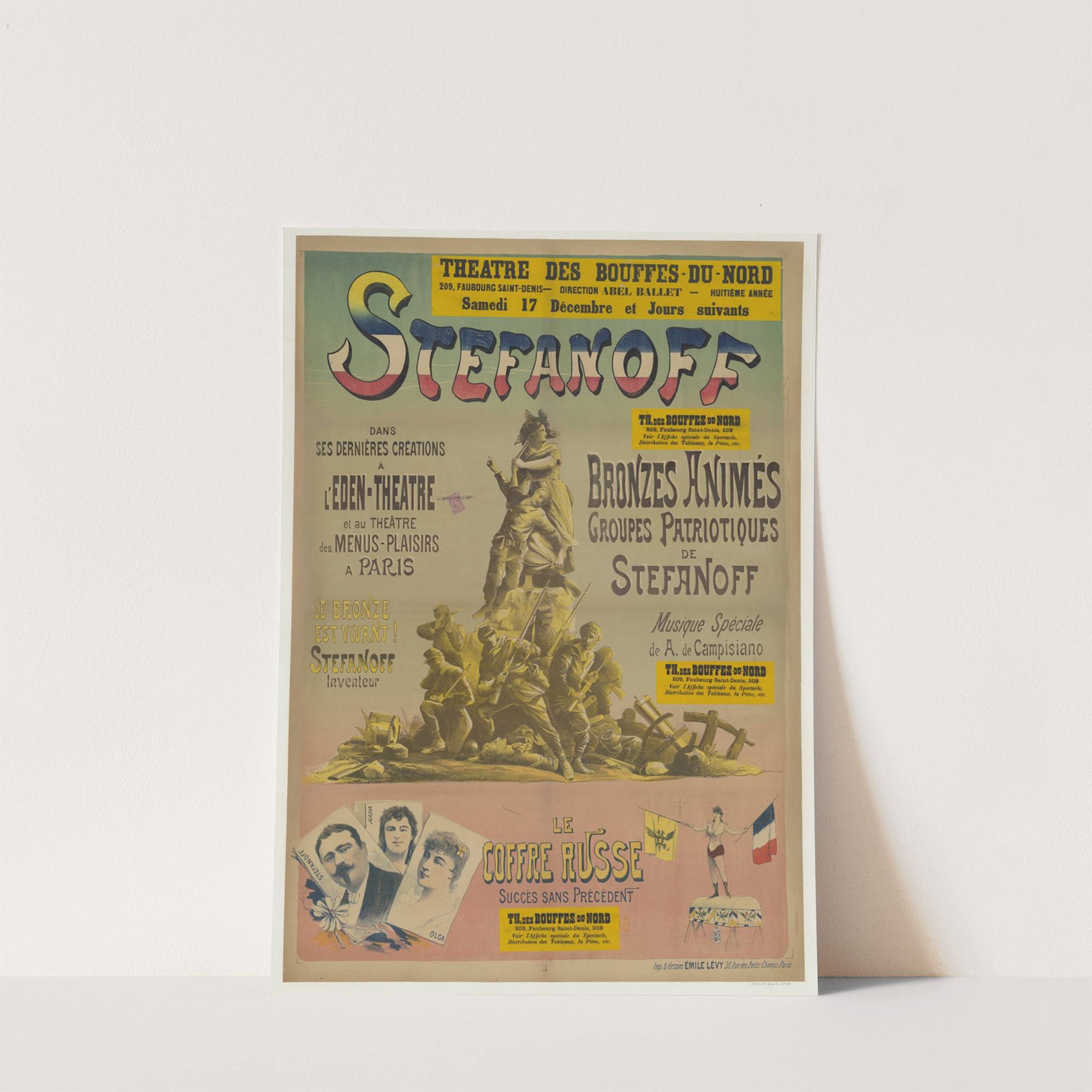 Théâtre des Bouffes-du-Nord. Stefanoff dans ses dernières créations à l’Eden-Théâtre et au théâtre des Menus-Plaisirs à Paris (1882) by Imp. Emile Lévy - Wall Art Print