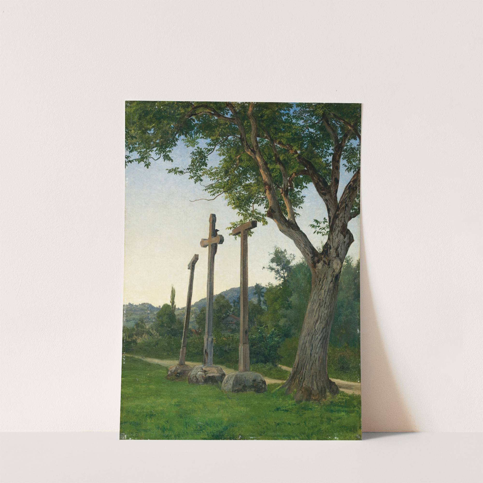Three Crosses Along A Country Lane by Robert Zünd - Wall Art Print