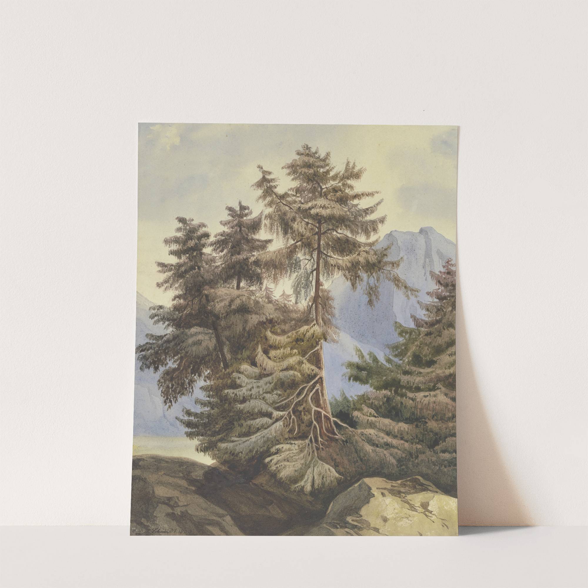 Three fir trees in the mountains by Ludwig Daniel Philipp Schmidt - Wall Art Print