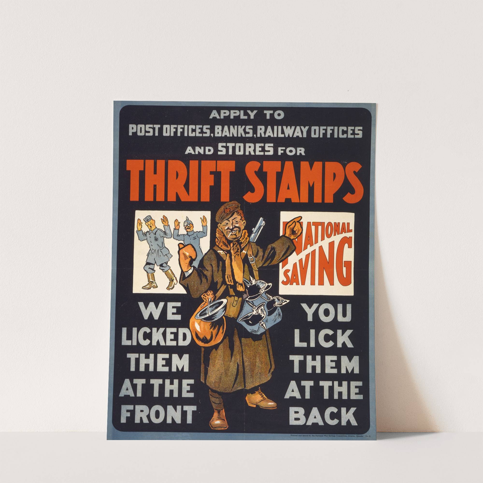 Thrift stamps. We licked them at the front, you lick them at the back by Henry de Groux - Wall Art Print