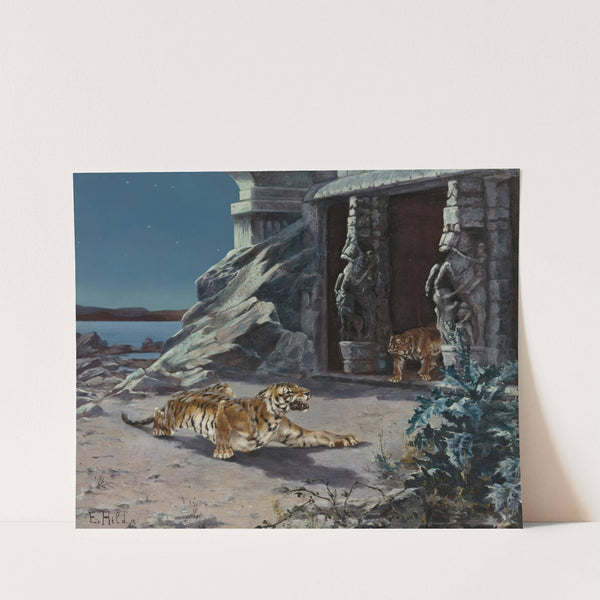 Tigers At A Temple Entrance by E. Baily Hilda - Wall Art Print
