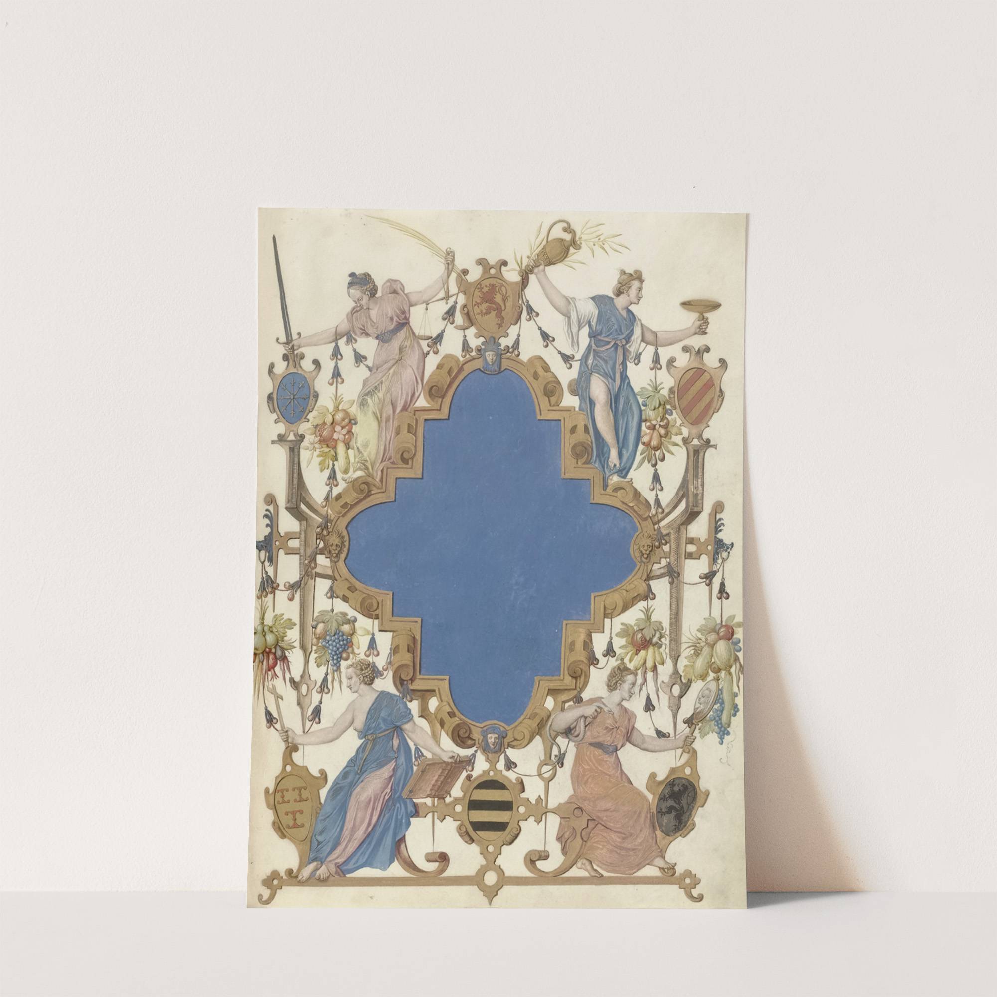 Titelblad met cartouche omgeven door vier allegorische vrouwenfiguren (1590-1593) by Nicolaes de Kemp - Wall Art Print