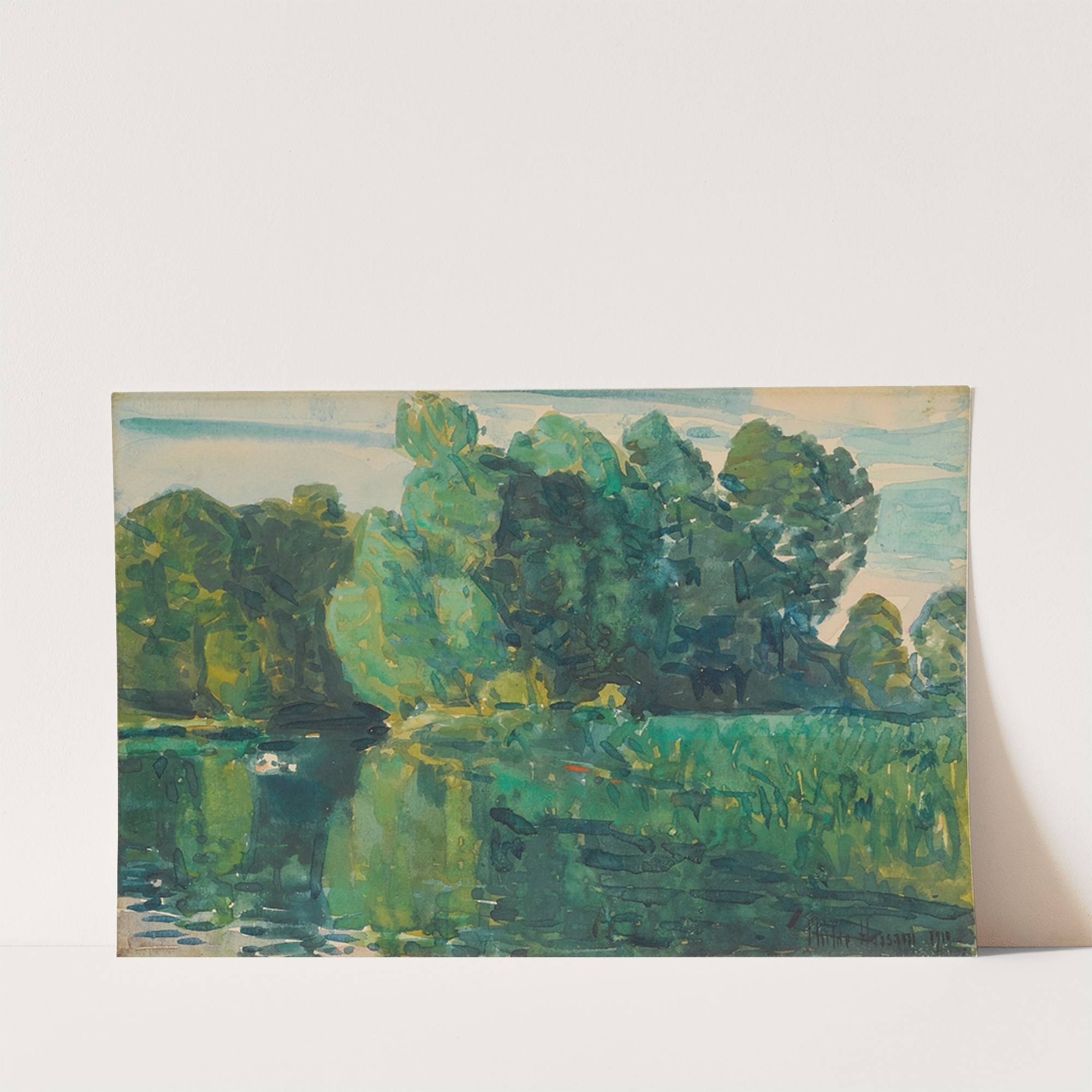 Trees by a Lake by Childe Hassam - Wall Art Print