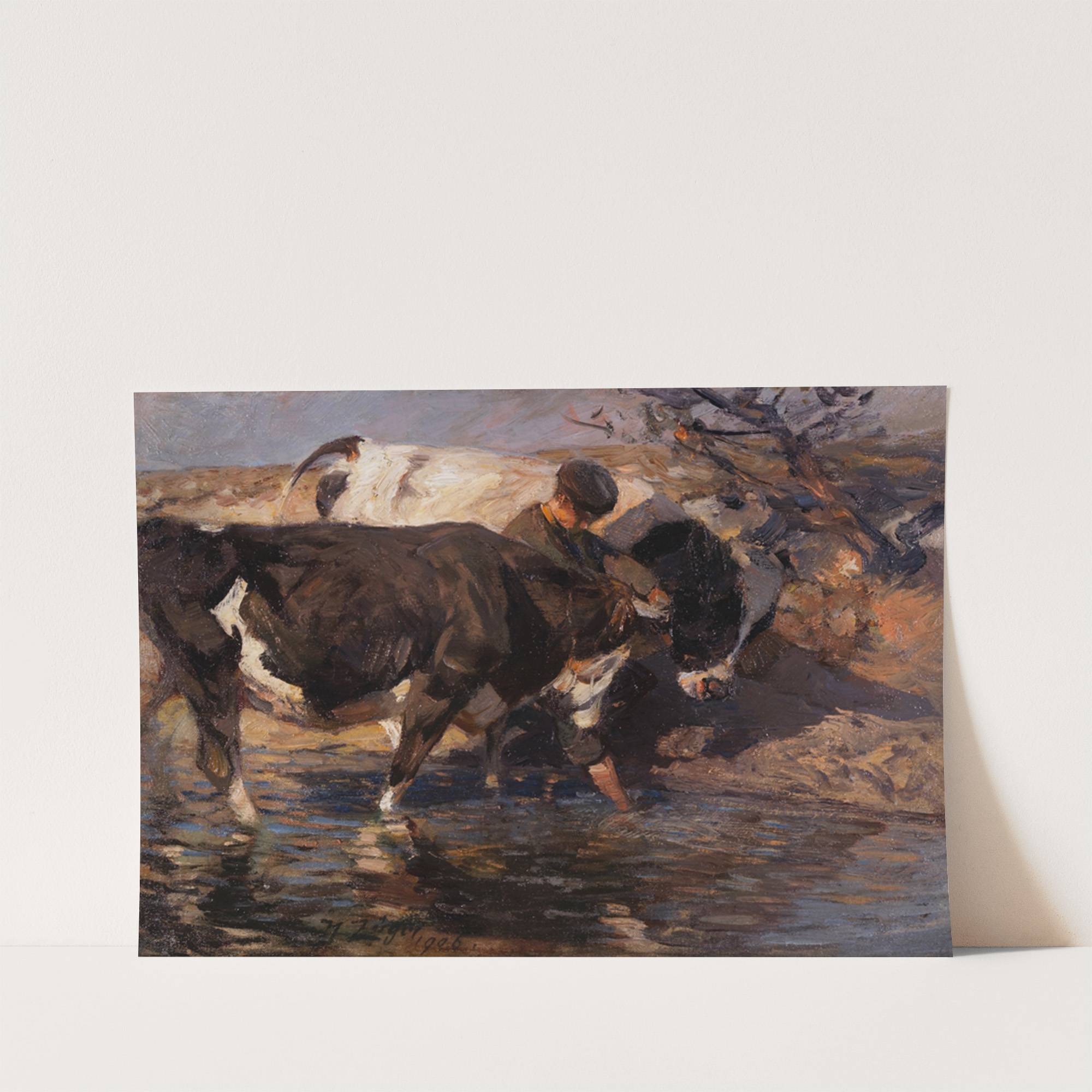 Treiber mit zwei Rindern an der Furt by Heinrich Von Zügel - Wall Art Print