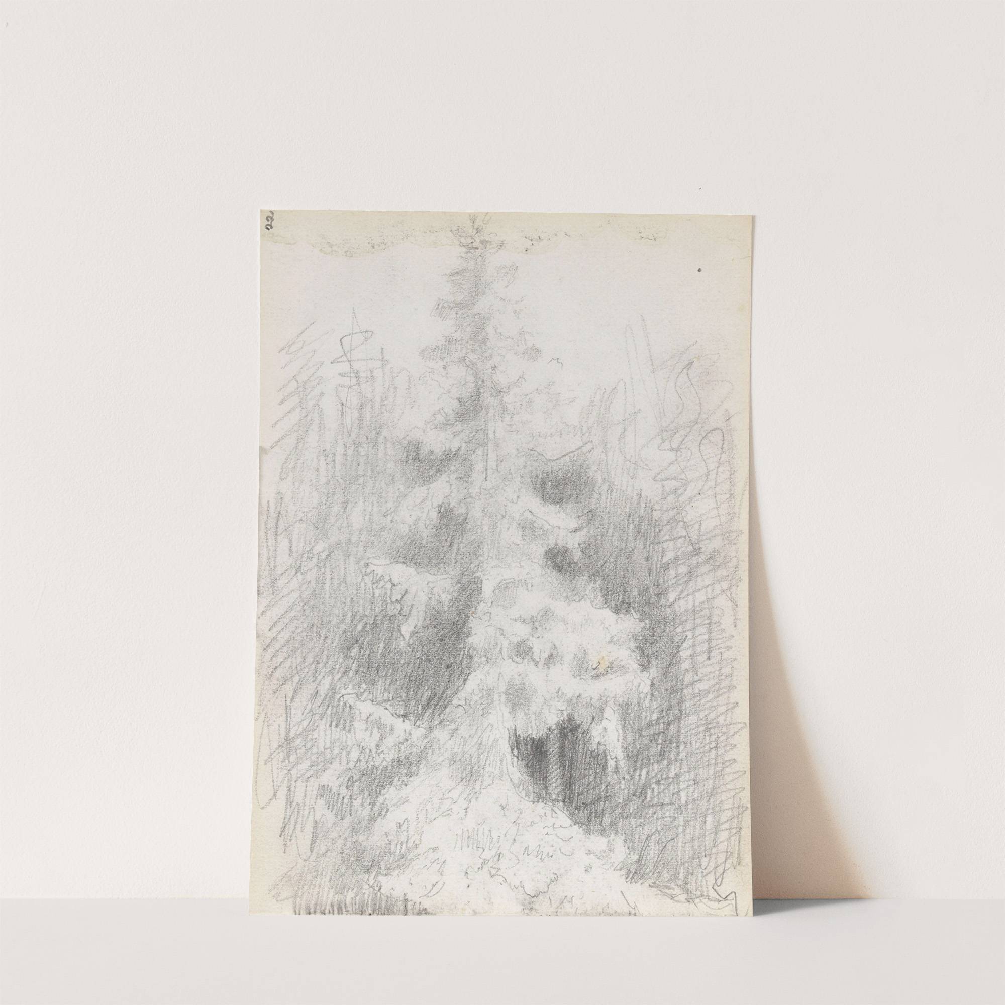 This artwork is "Hen" by Adolph Tidemand, capturing the essence of nature with delicate pencil strokes that create a sense of depth and motion. The piece features an abstract representation of feathers or leaves, rendered in varying shades of black...