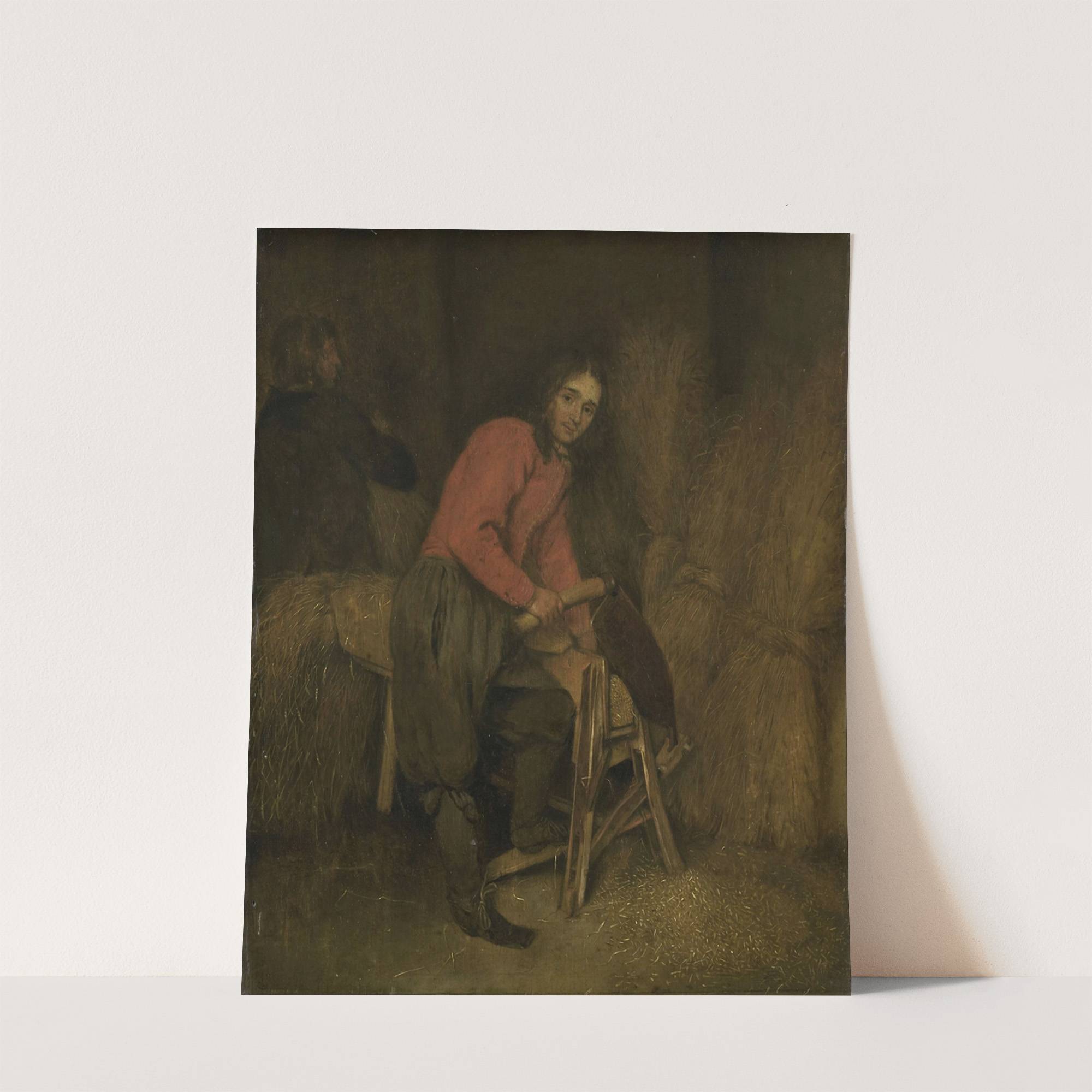 Trimming bales of hay by Caspar Netscher - Wall Art Print