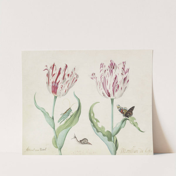 Twee tulpen met krekel, slak en vlinder Admiral van Rissel Morrillon da Costa (1637) by Jacob Marrel - Wall Art Print