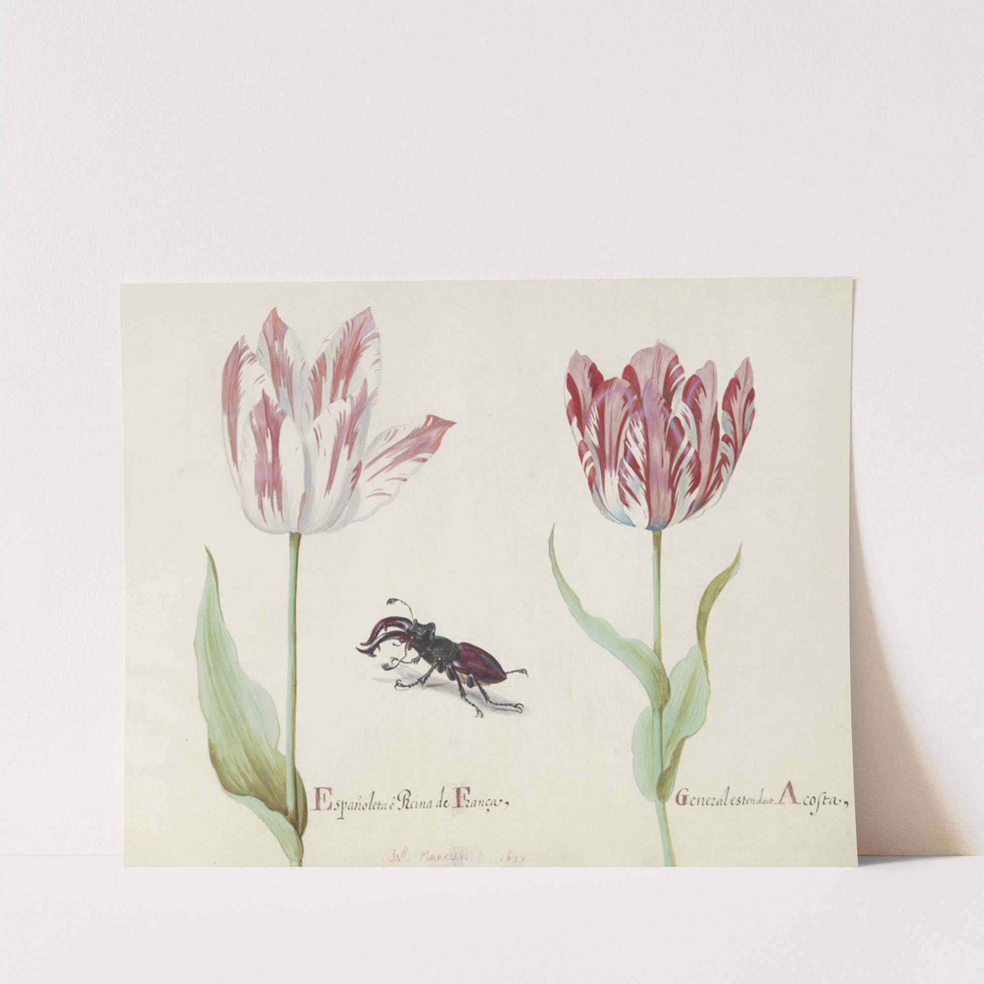 Twee tulpen met vliegend hert Espanoleta o Reina de Franca General estendart Acosta (1637) by Jacob Marrel - Wall Art Print