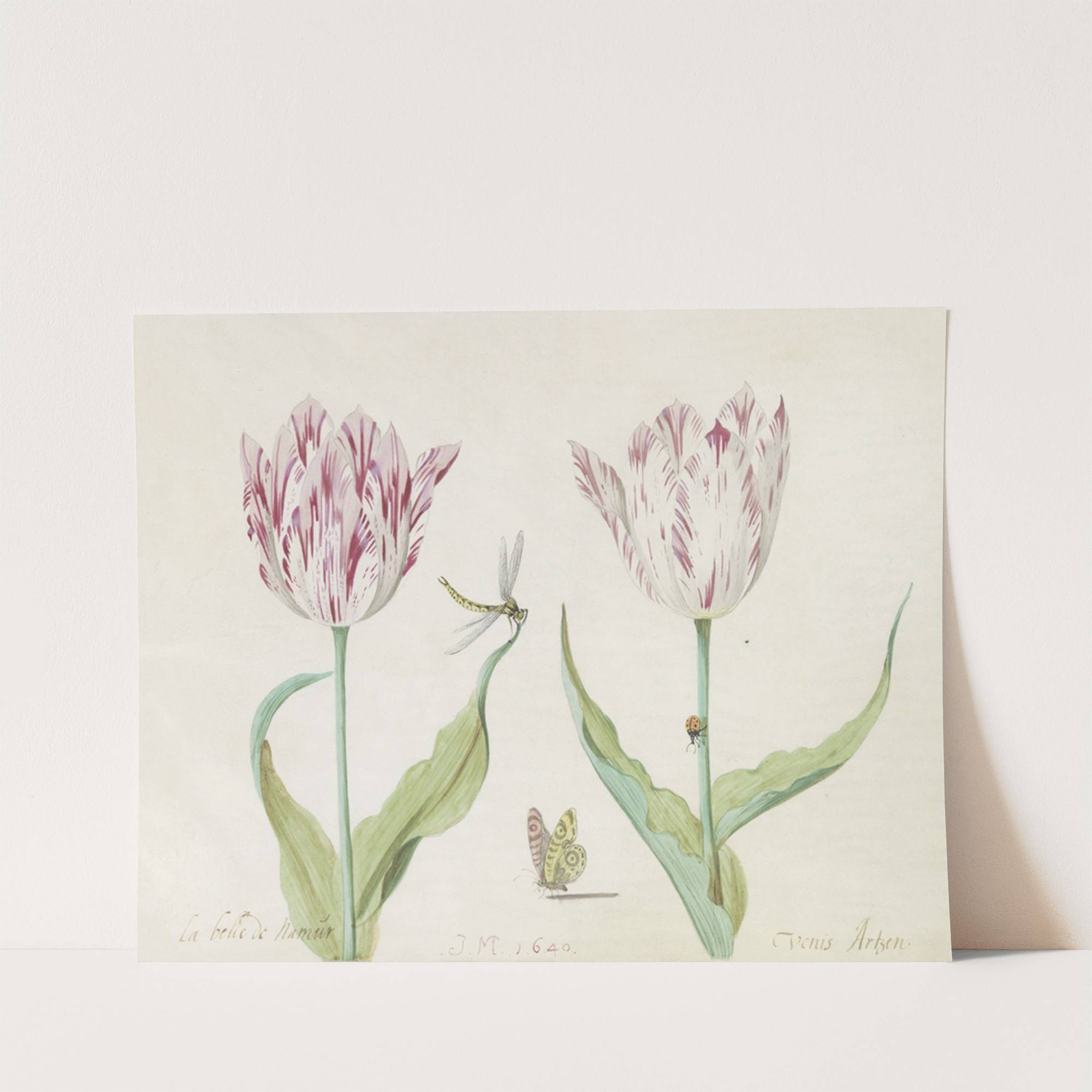 Twee tulpen met vlinder, libelle en lieveheersbeestje La belle de Namur Venis Artzen (1637) by Jacob Marrel - Wall Art Print