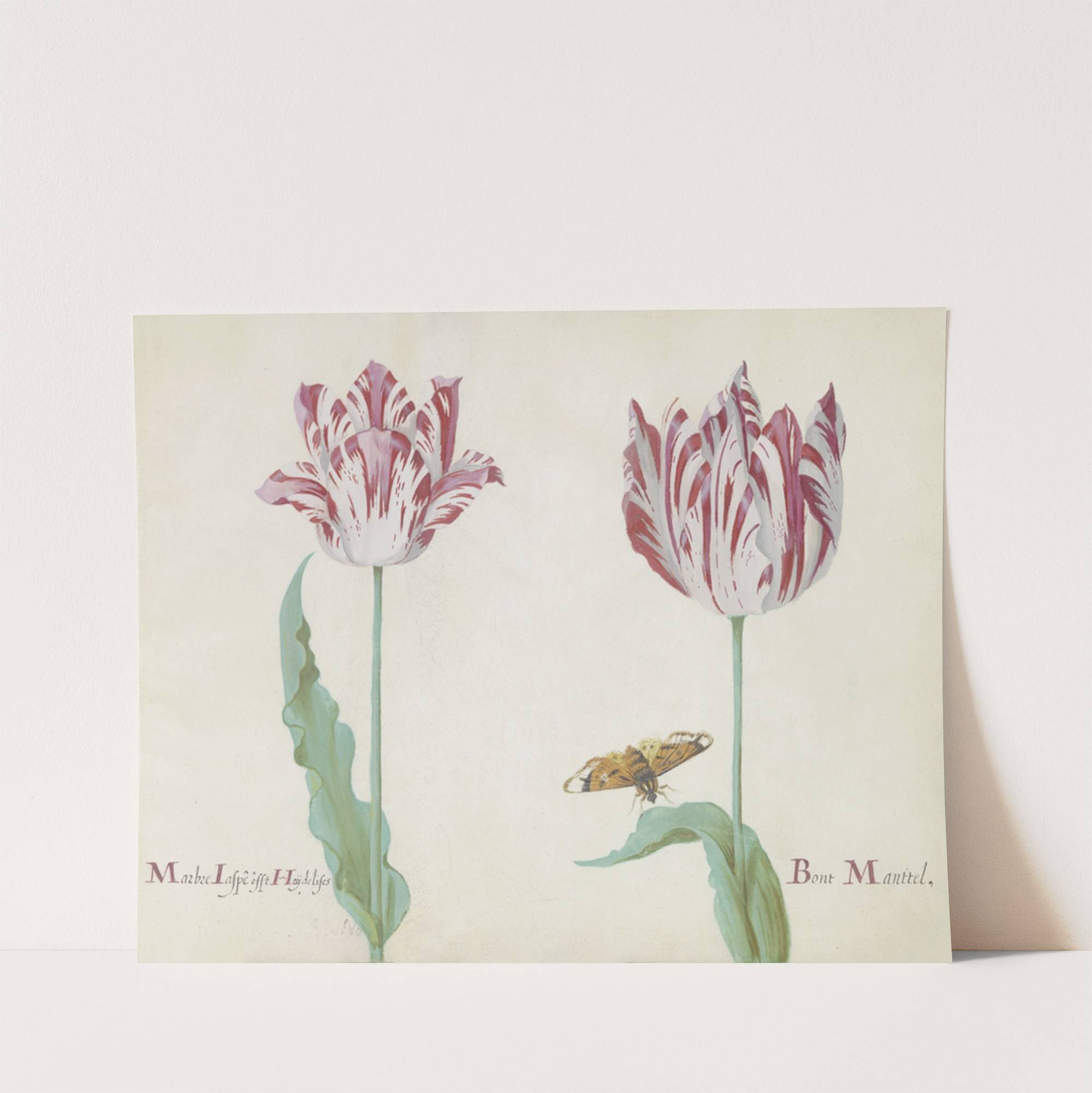 Twee tulpen met vlinder Marbre Laspe offt Hoijdelifes Bont Manttel (1637) by Jacob Marrel - Wall Art Print