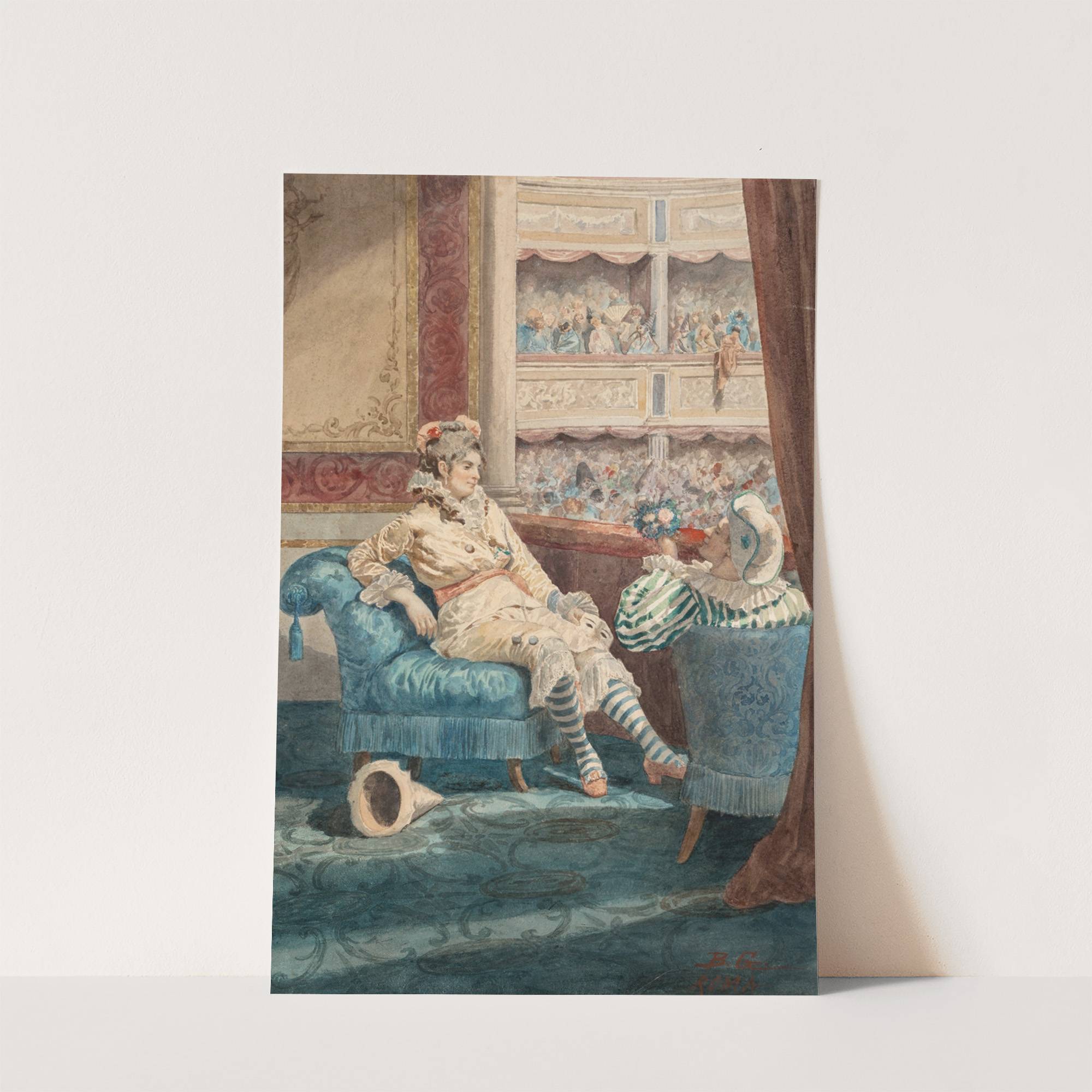 Two figures dressed for Carnival at a theatre by Belisario Gioja - Wall Art Print
