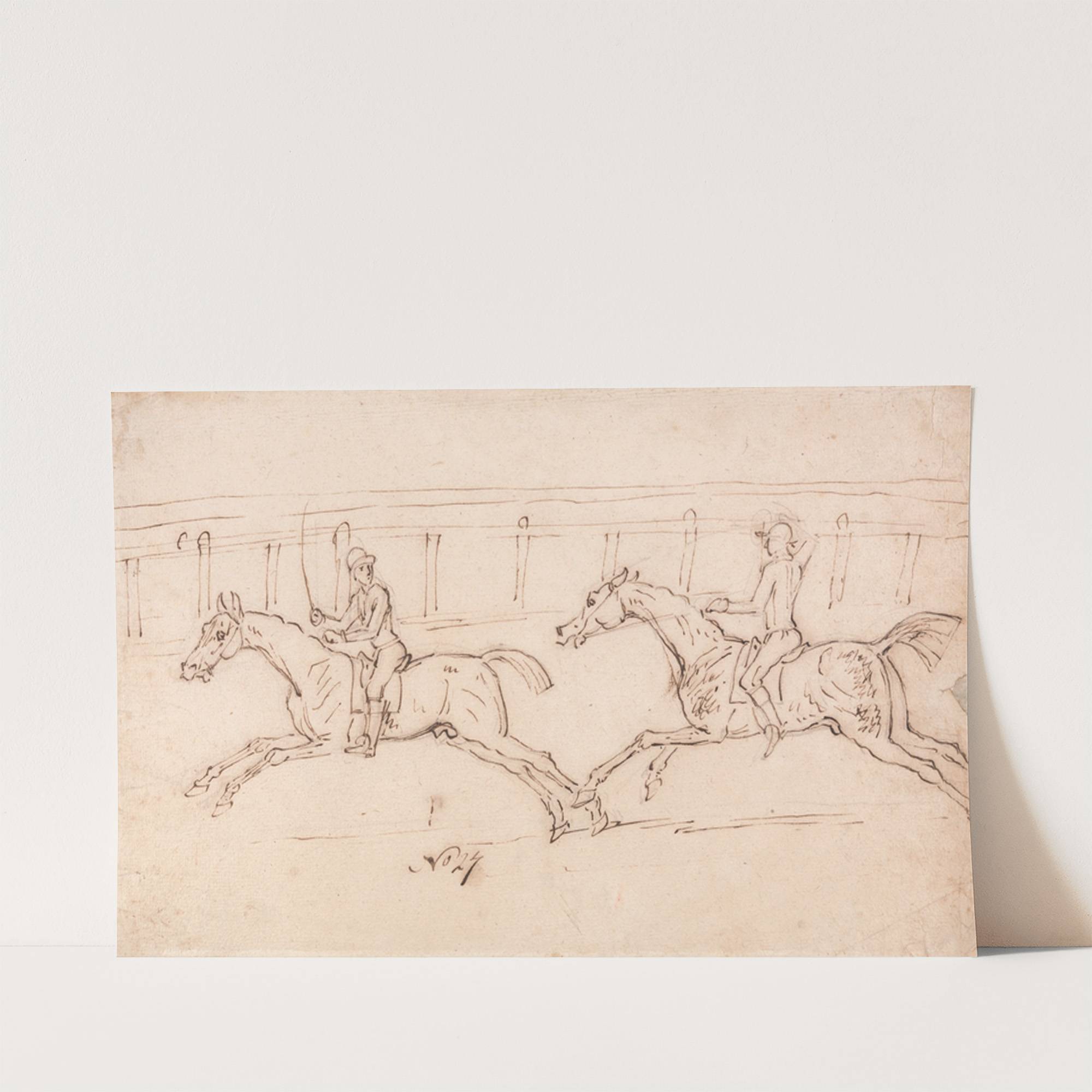 Two Horses Racing, Jockeys Up Railings in the Background by James Seymour - Wall Art Print