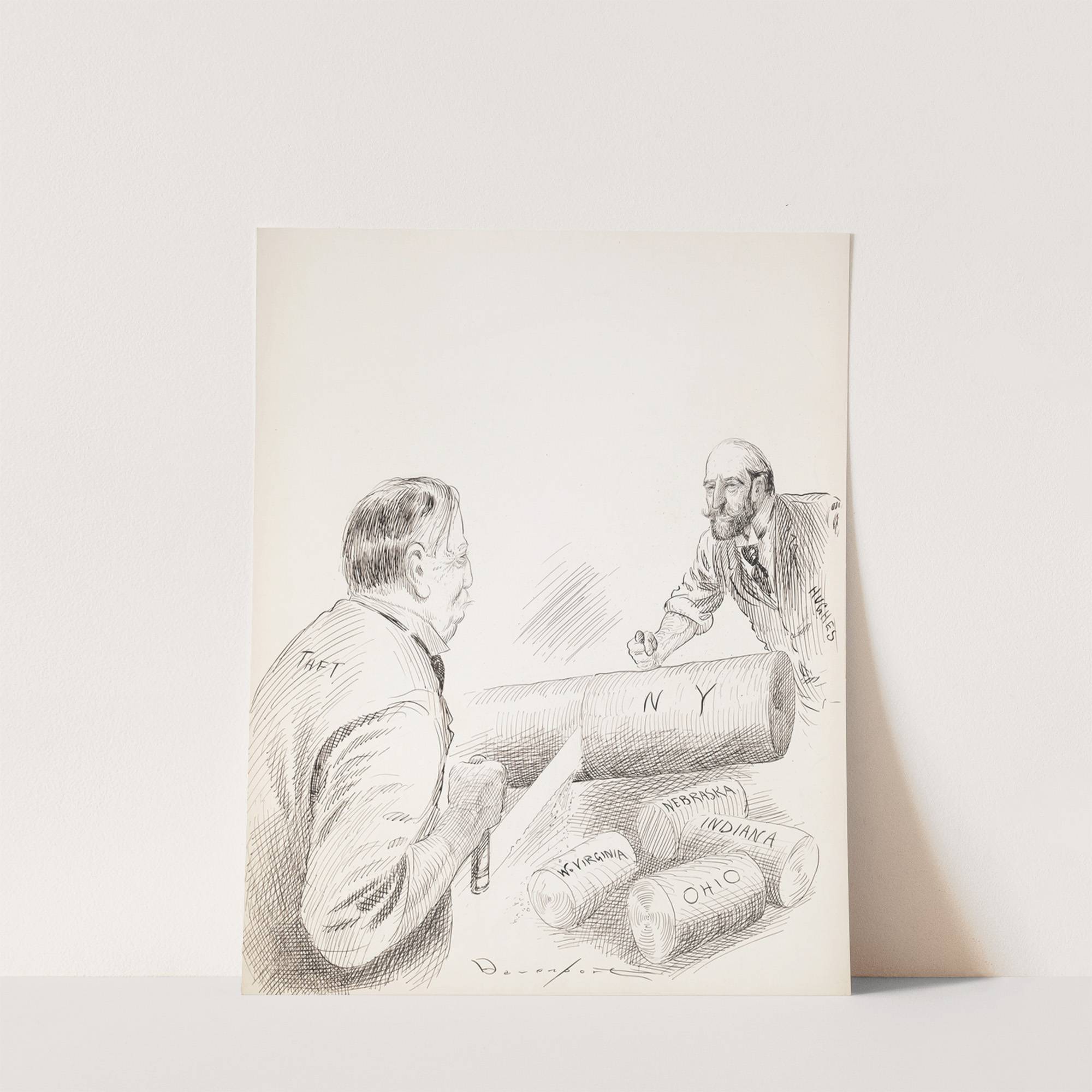 Two men, Taft and Hughes, saw chunks off of a log by Homer Davenport - Wall Art Print
