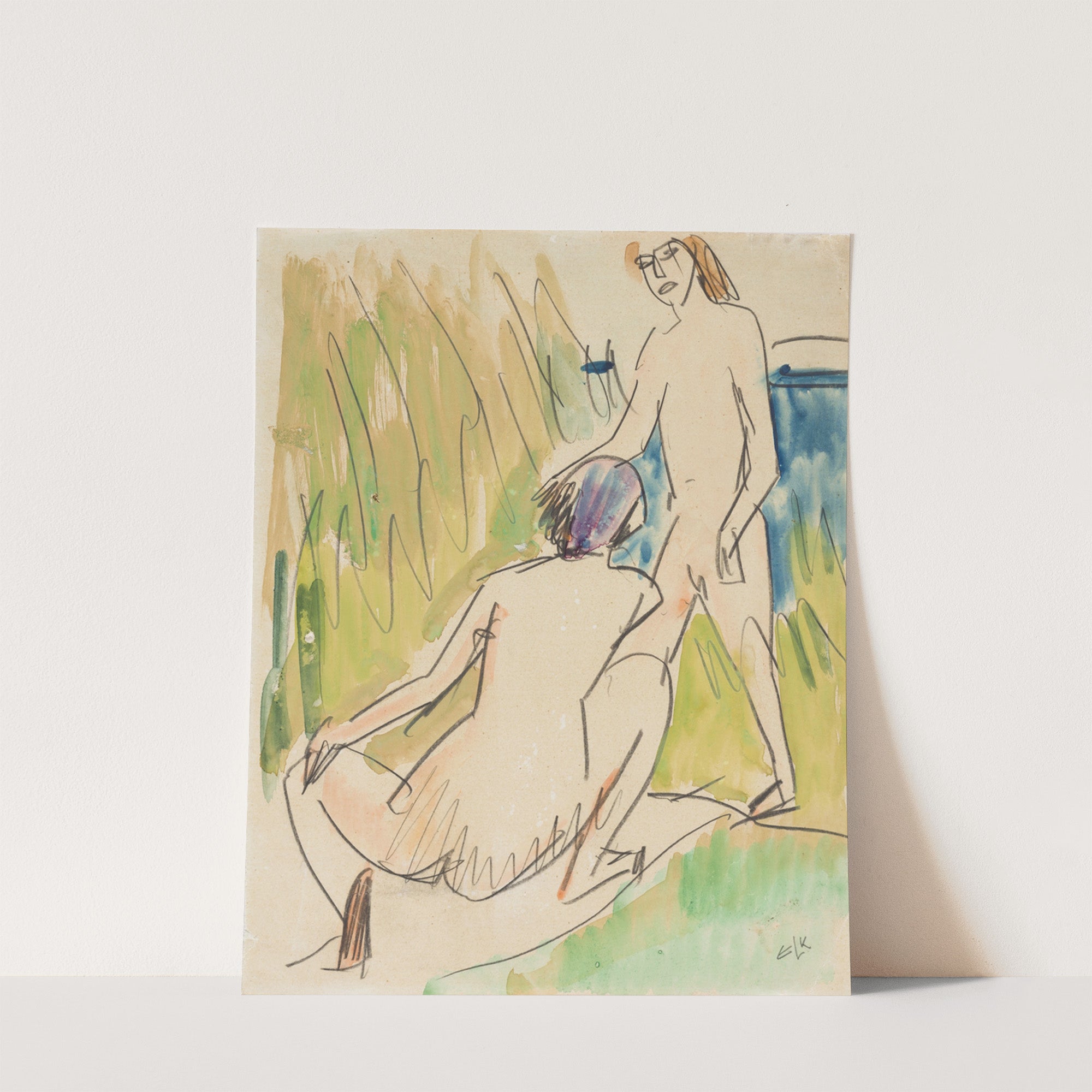 Two Nudes at the Sea—Fehmarn (1912) by Ernst Ludwig Kirchner - Wall Art Print