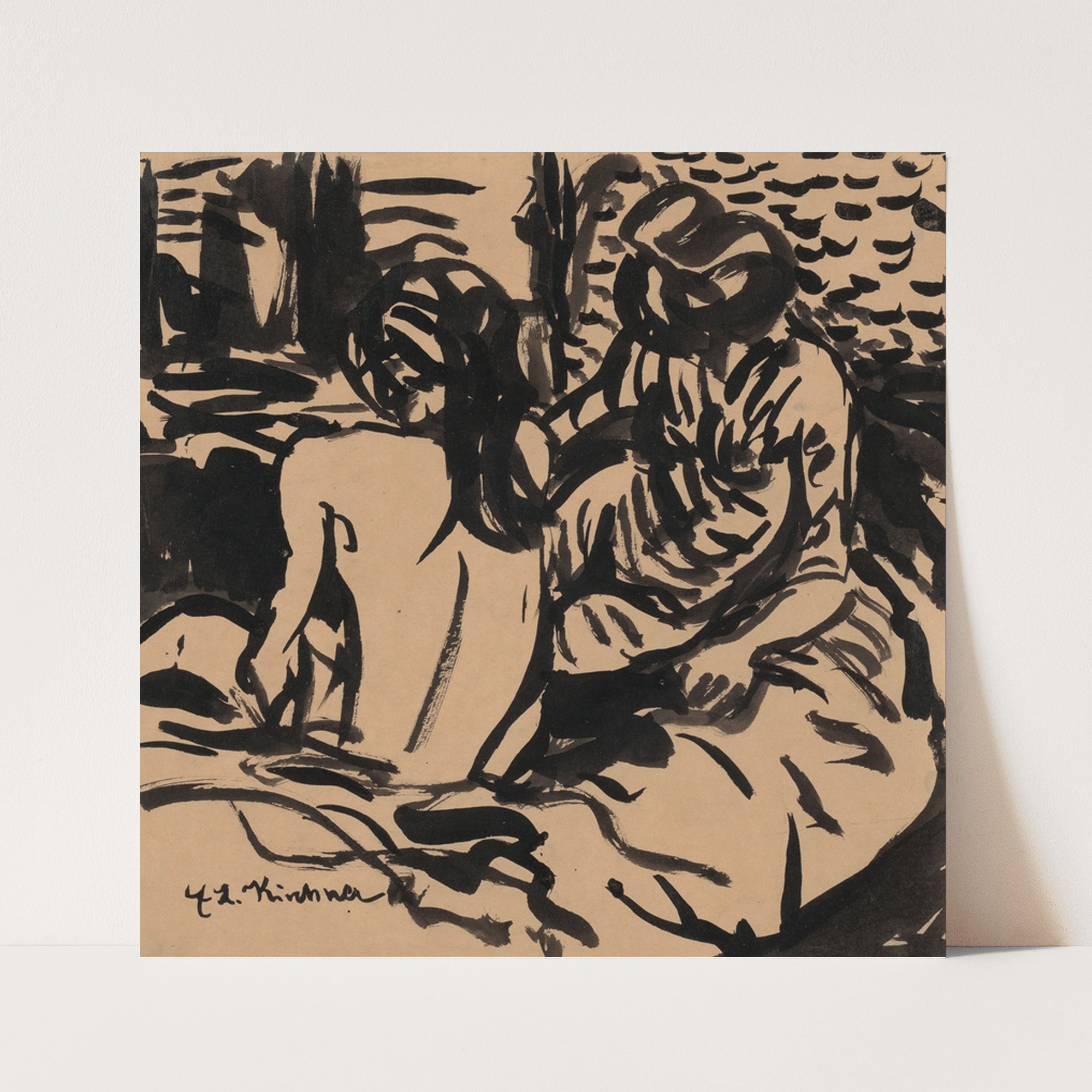 Two Nudes on a Bed (Isabella and a Younger Girl) (c. 1906) by Ernst Ludwig Kirchner - Wall Art Print