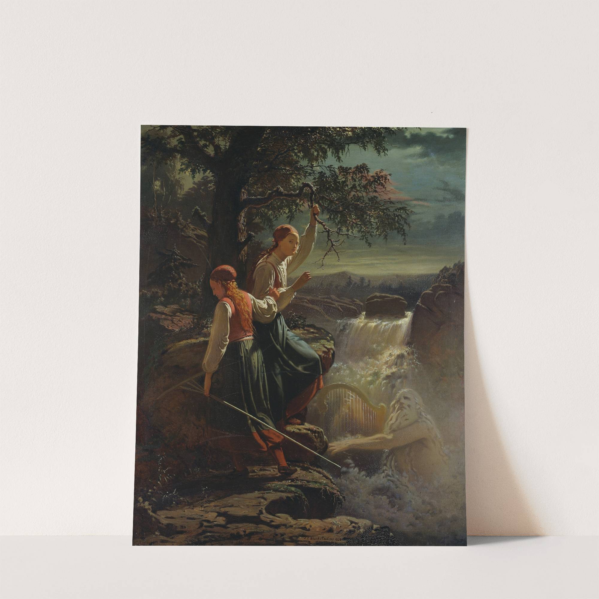 Two Peasant Girls Listening to the Playing of the Water-Sprite by Johan Zakarias Blackstadius - Wall Art Print