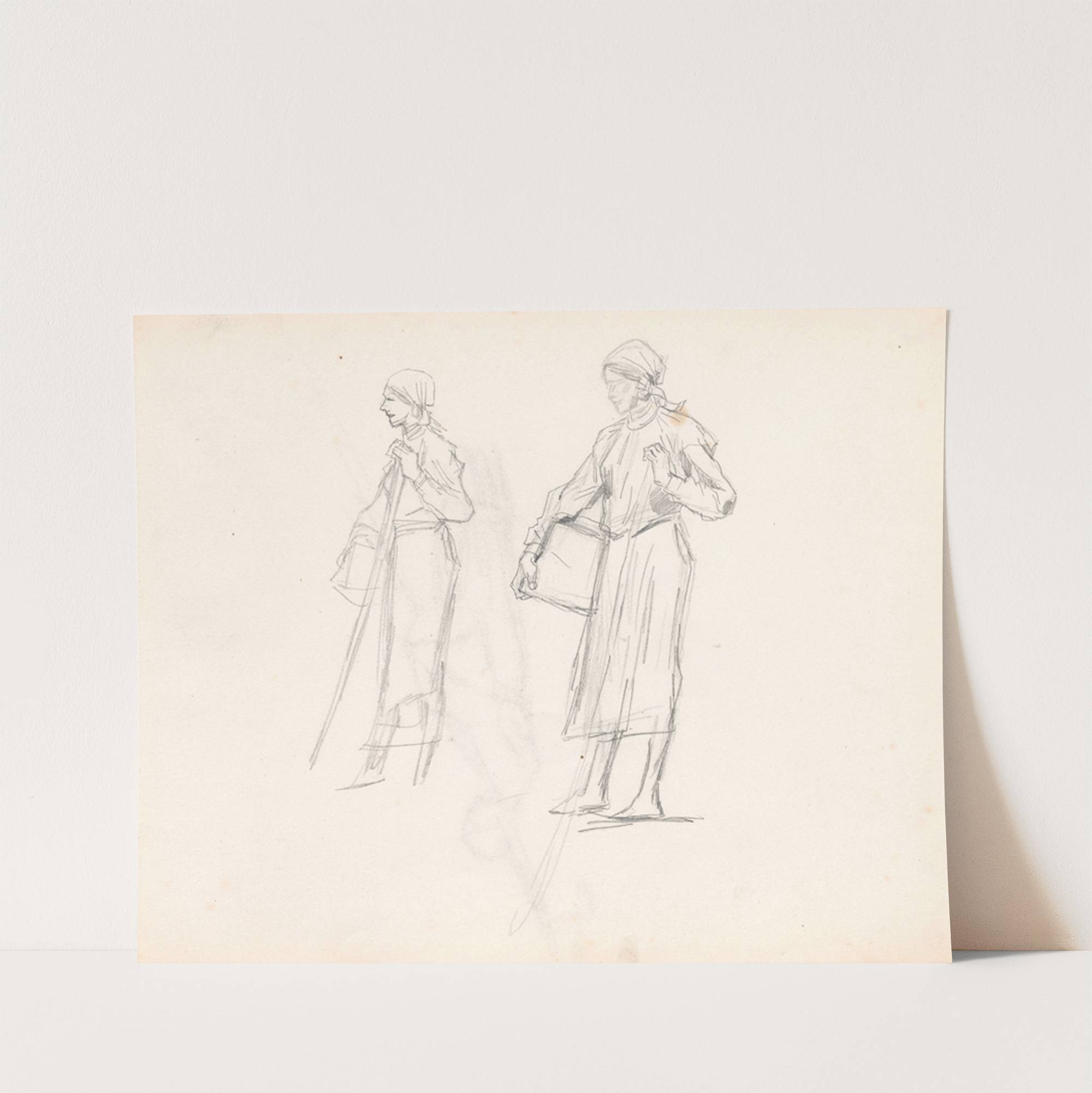 Two sketches of a country woman with a pail, sketch for the painting “Going hunting” (1883) by Jozef Brandt - Wall Art Print