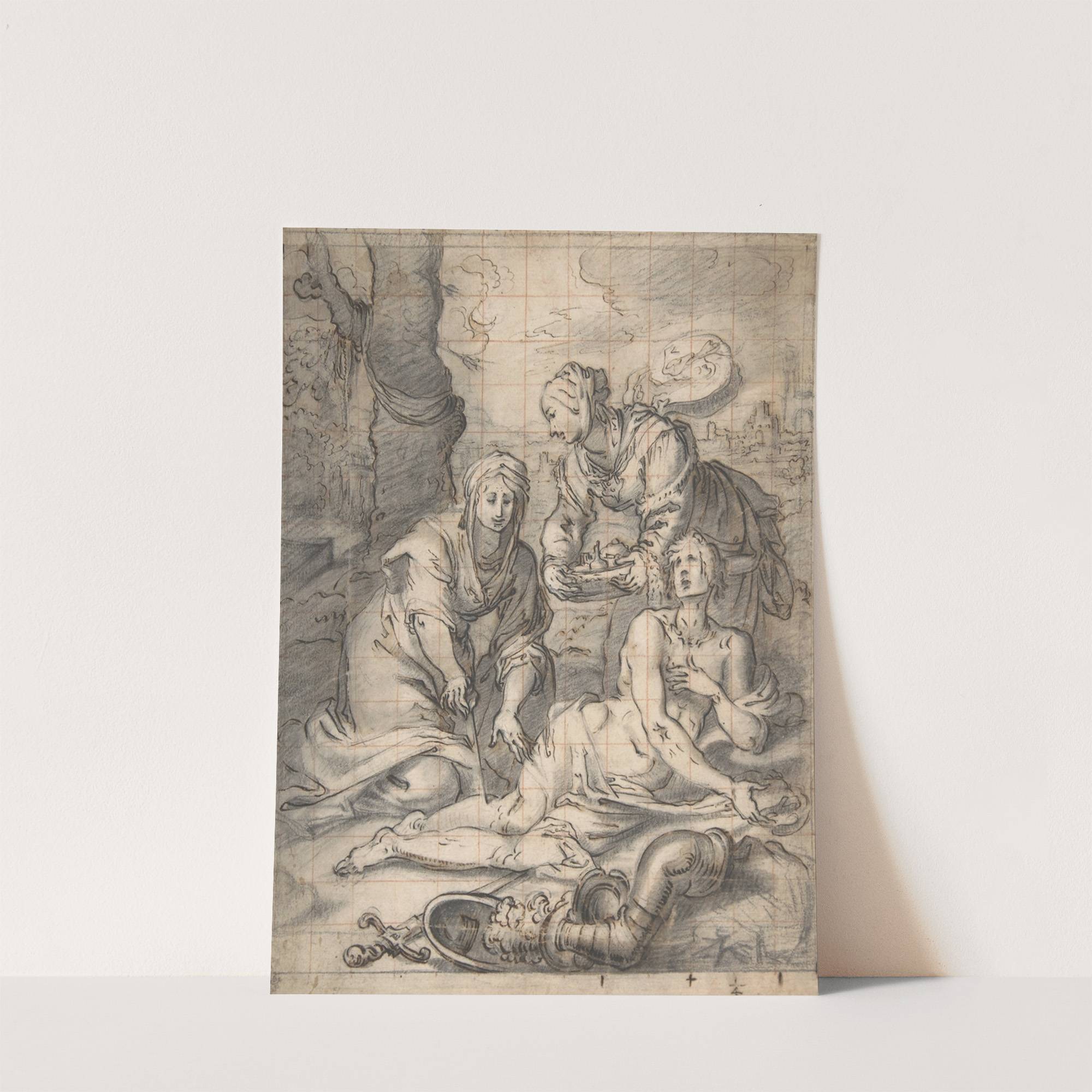 Two Women Annointing the Wounds of Saint Sebastian by Giovanni Biliverti - Wall Art Print