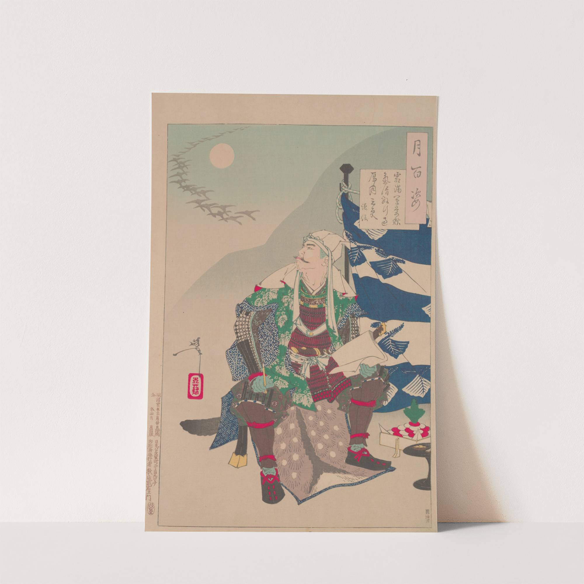 Uesugi Kenshin watching geese in the moonlight by Tsukioka Yoshitoshi - Wall Art Print