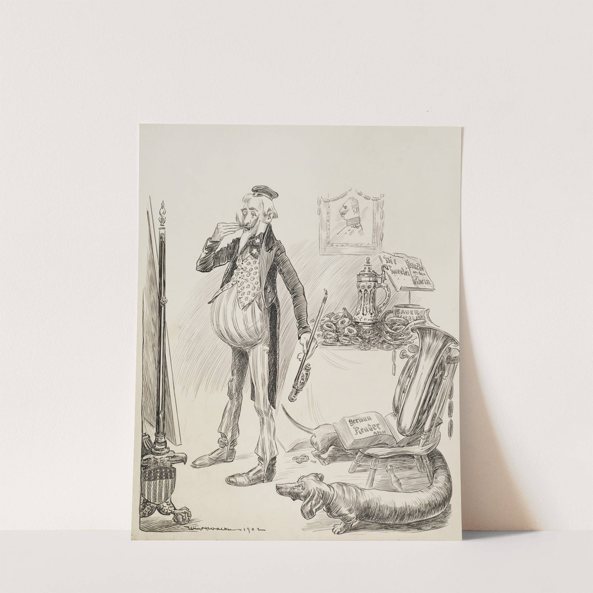 Uncle Sam depicted as the Kaiser; hat style, mustache style, and pipe, with German items around the room. (1902) by William Henry Walker - Wall Art Print