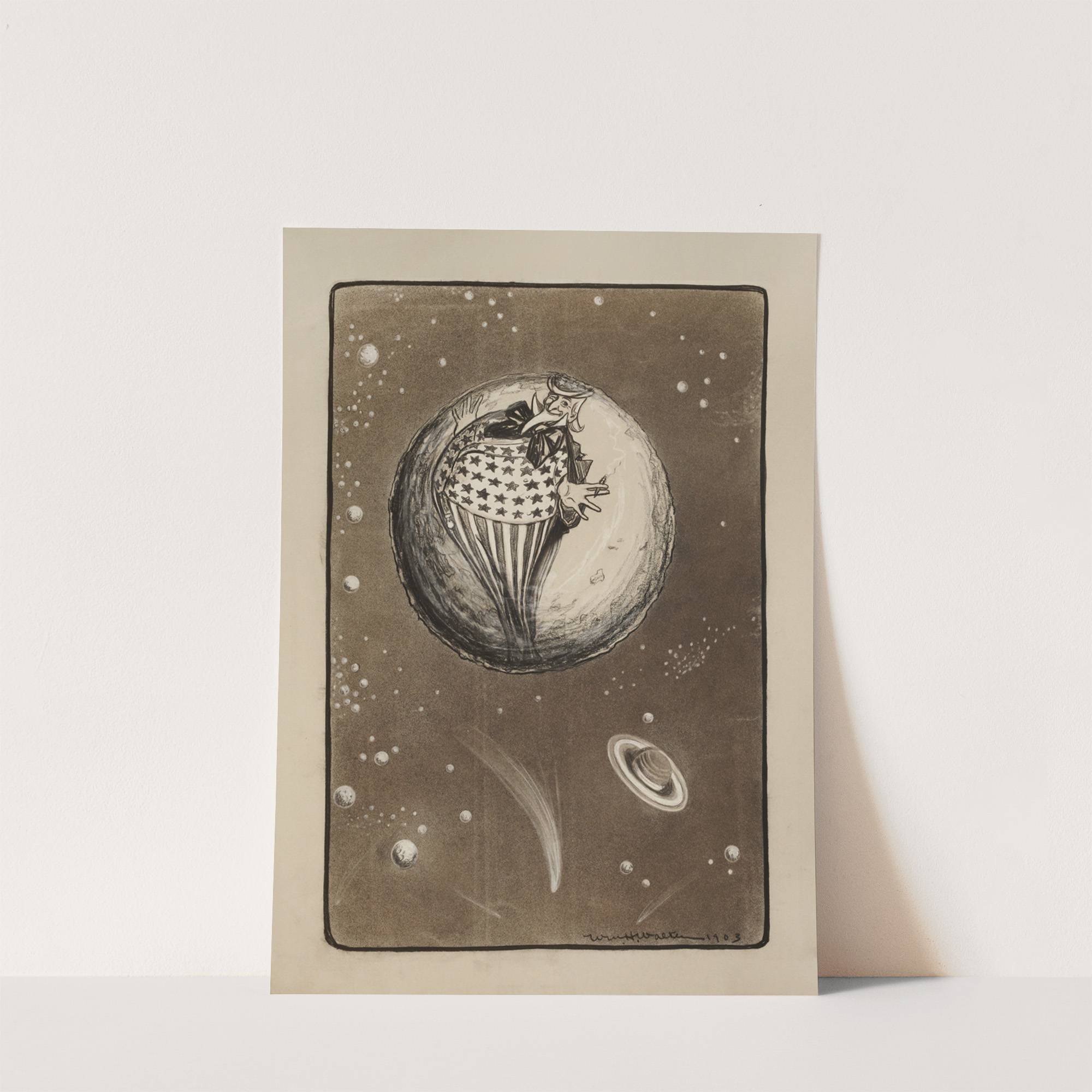 Uncle Sam depicted as the man on the moon. (1904) by William Henry Walker - Wall Art Print