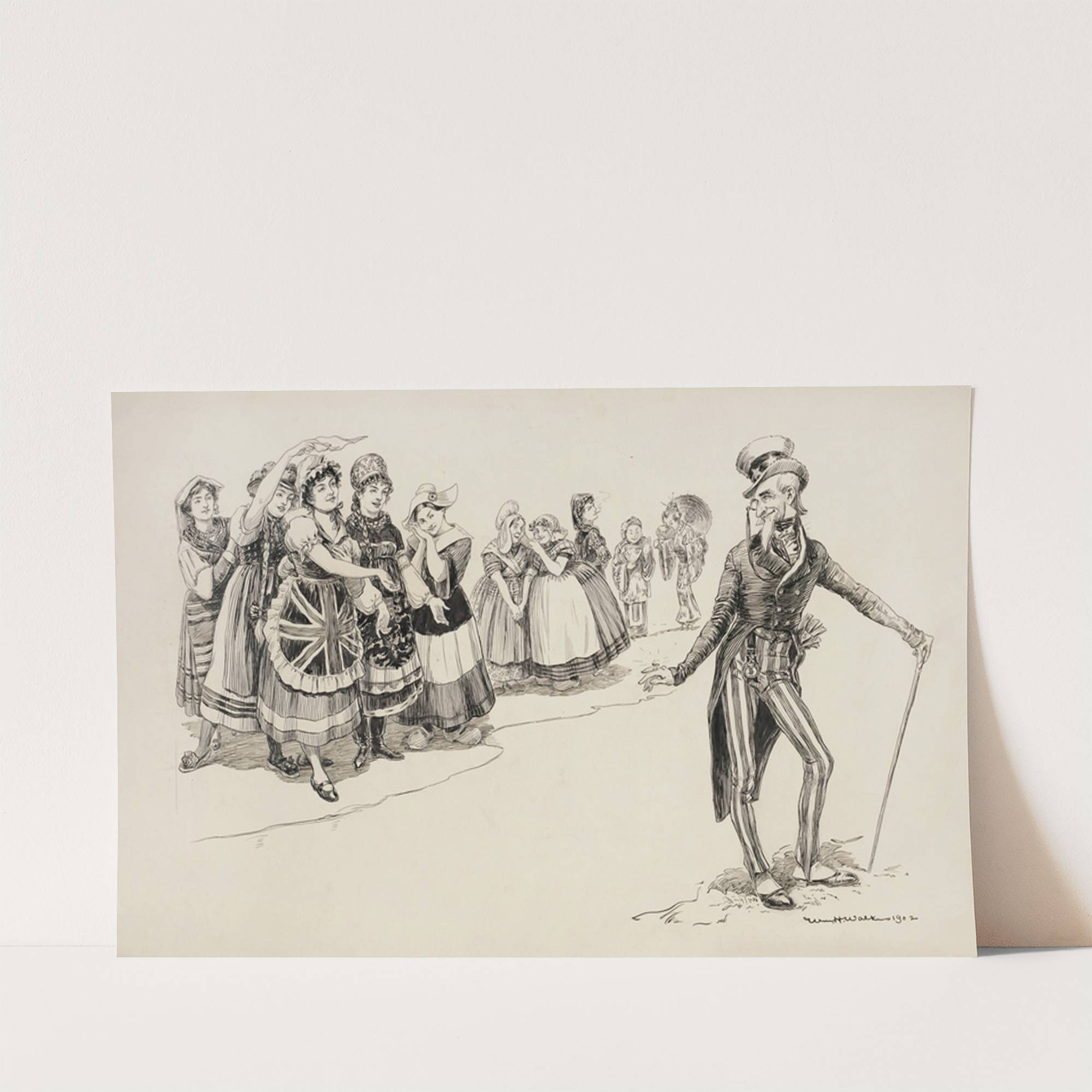 Uncle Sam is admired by ladies representing several countries (1902) by William Henry Walker - Wall Art Print