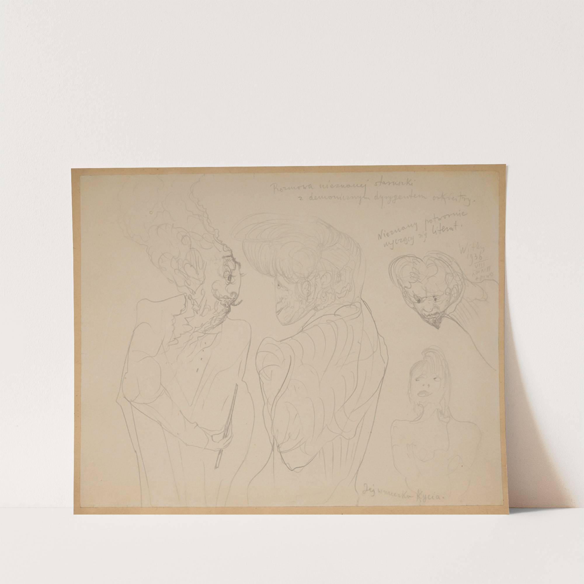 Unknown elderly woman talking to the demonic conductor of an orchestra (1936) by Stanisław Ignacy Witkiewicz - Wall Art Print